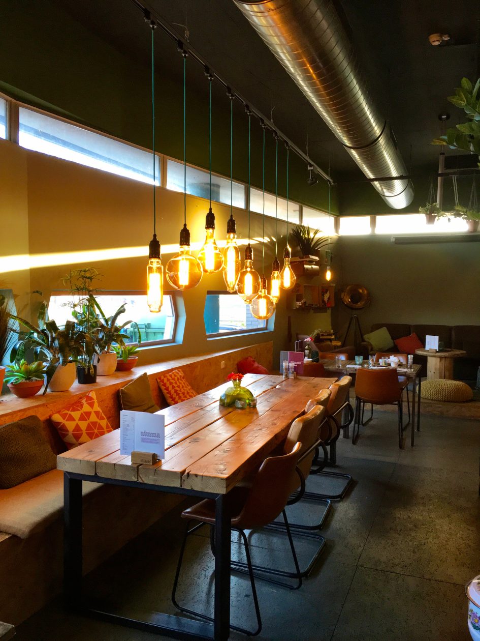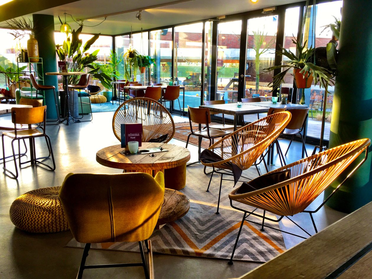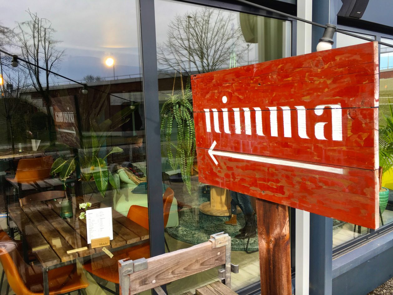 Waar zitten we? We zitten heel erg op ons gemak in Hotel Nimma. Waar? Nijmegen, man. Een superfijne plek met de look-and-feel – hou je vast, we gaan nu even populair doen – gezellig industrieel met een vleugje jaren 60 greenhouse. Er zit ondertussen een glas witte wijn in het lijf, het is gezellig druk, de bank zit uitstekend en de muziek is top. Nimma is tof.