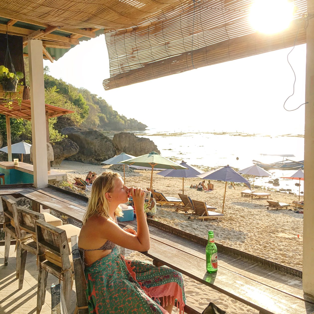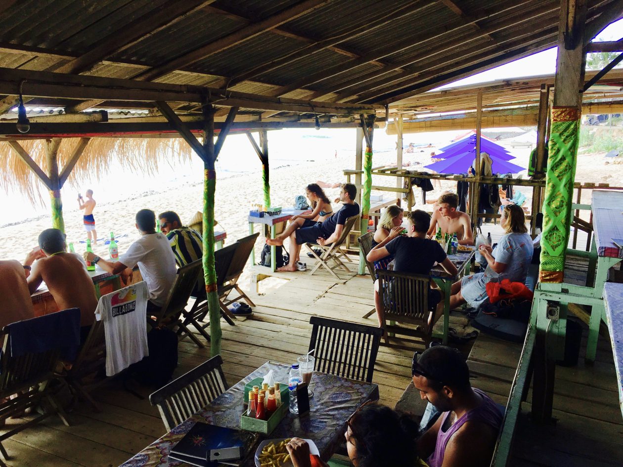 Vanaf een van de vele toffe eettentjes zit je op de eerste rij voor de krankzinnig mooie zonsondergang. Als de avond valt, wordt er op halve oliedrums vis en kip geroosterd en brandt er een kampvuur op het strand. Ik zit goed, ik ga niet weg. Beter wordt het niet.