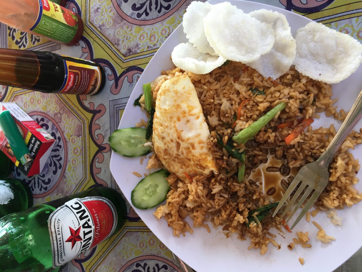 Bij Ossy hebben we het lekkerst gegeten. Ossy zit tussen het Sunset Cafe en Santai Warung. Het Sunset Cafe verhuurt kamers voor 250.000 per nacht. Bel 081934340825. Een
