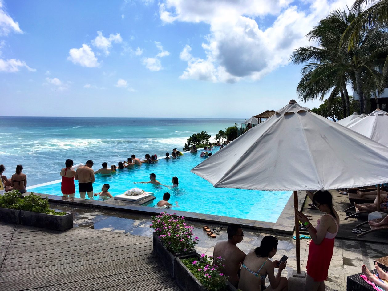 Hier hebben we alleen wat gedronken en clandestien van het uitzicht genoten in de infinity pool van het Klapa Hotel. Een hilarisch hotel dat me meteen aan de film Lost in Translation deed denken. Afijn, je had erbij moeten zijn.