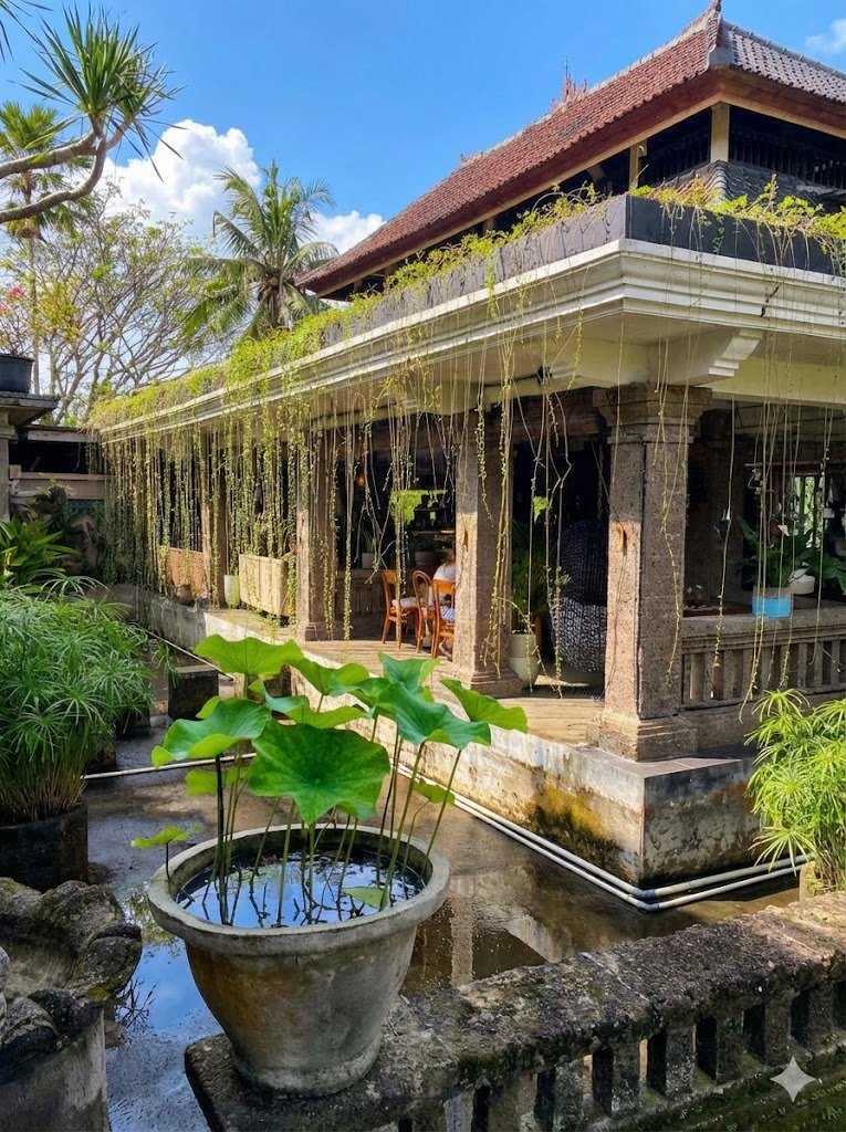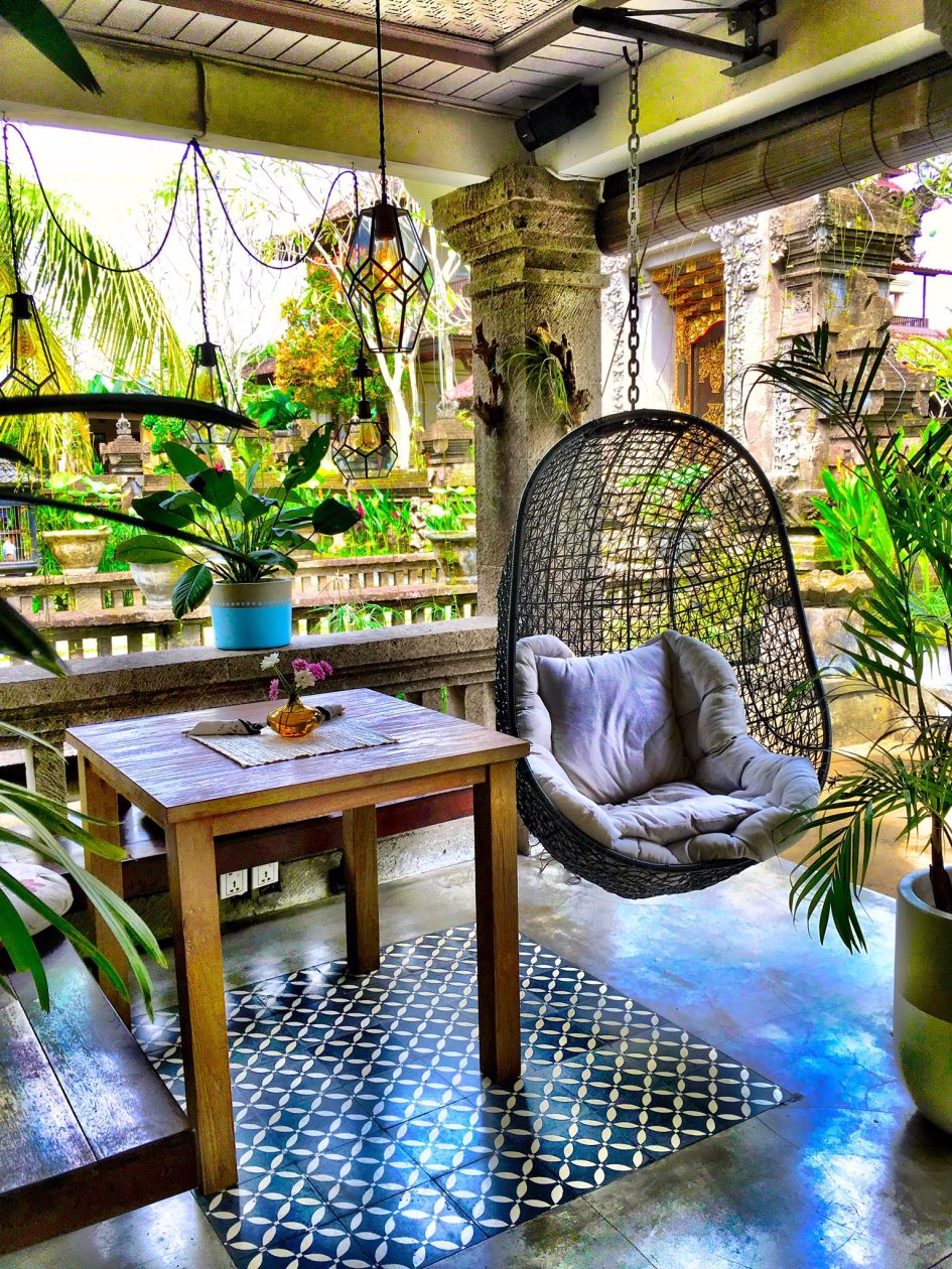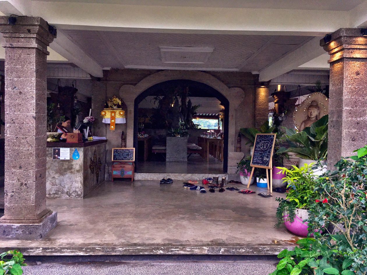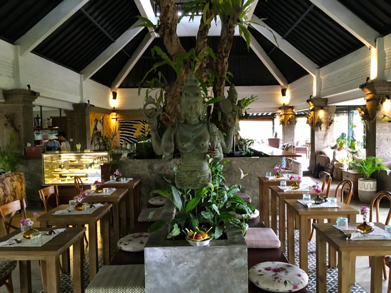 Het is hilarisch om te zien hoe die stalen, rokende filerups zich door de straten slingert. Wijs geworden hebben we de tweede dag een gids op een scooter gehuurd, die ons van ons hotelletje naar vriend Corame in het prachtige café/restaurant Zest bracht. Yep, ook in Ubud. Maar het tegenovergestelde van het centrum: hier heersen zen en uitstekende dubbele espresso.