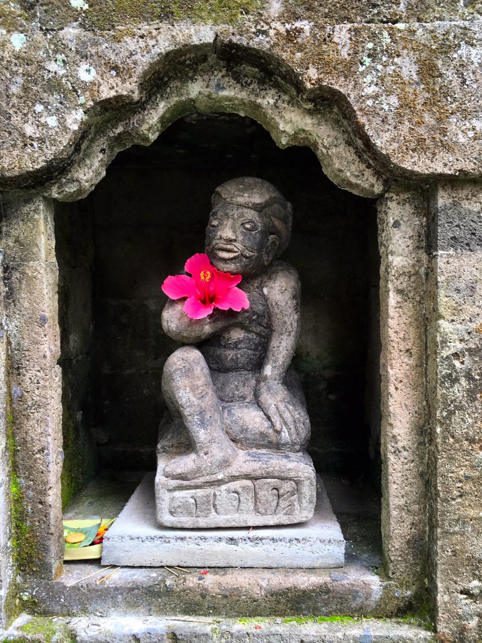 We zitten in Ubud, het centrum van de kunstnijverheid op Bali. Daarnaast is het de idiootste plaats om je met een huurscooter en je Nederlandse kaaskop in de uitlaatgassenchaos, die het centrum van Ubud heet, te begeven. Het verkeer in het centrum van Ubud staat voor het grootste deel van de tijd muurvast. En dan bedoel ik spijkervast, wat de kans op serieuze ongelukken wel weer verkleint.
