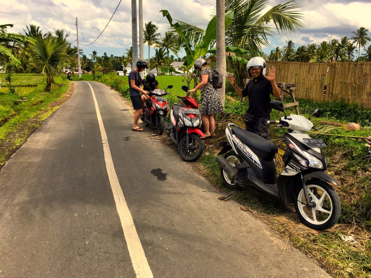 De kosten liggen er een beetje aan wat je allemaal wilt doen. Maar reken op ongeveer 300.000 tot 400.000 IDR (100.000 IDR is ongeveer € 6,-). Hij haalt je daarvoor op bij je hotel en zet je daar aan het einde van de trip weer af. Jij betaalt de eventuele toegangs- en parkeerkosten en het eten onderweg (vaak heeft de gids gratis entree en betaalt hij niets voor het parkeren).