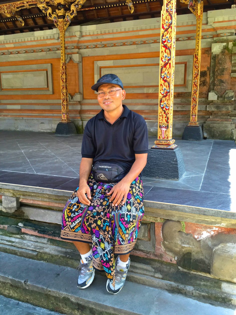 Neem Sauna. Een superfijne man die goed Engels spreekt en breed geïnformeerd is over alle facetten van de geschiedenis, religie en het dagelijkse leven in en rond Ubud, Bali.