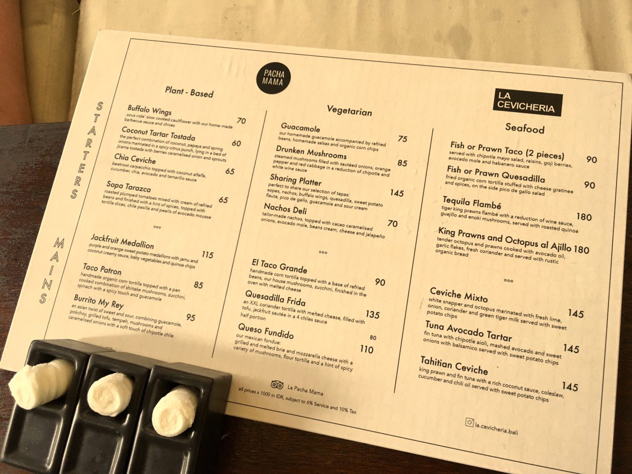 Tussen deze twee uitersten bevinden zich de hippe yoga-zinzoekers, steenrijke expats in hun fantastische designpaleizen en de goeroes. Deze maffe mix zorgt voor mooie crossovers in eten, drinken en design op elk vlak. Kijk nou even naar deze toffe Mexicaan aan de rand van Ubud.
