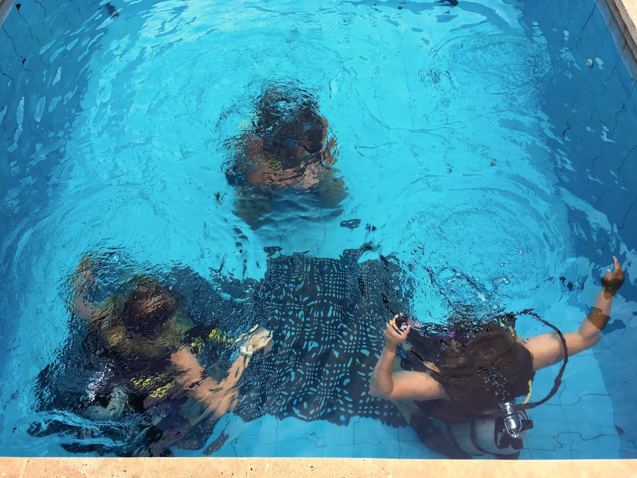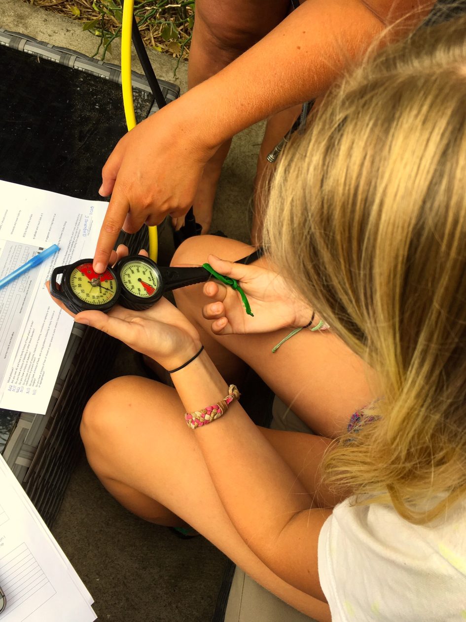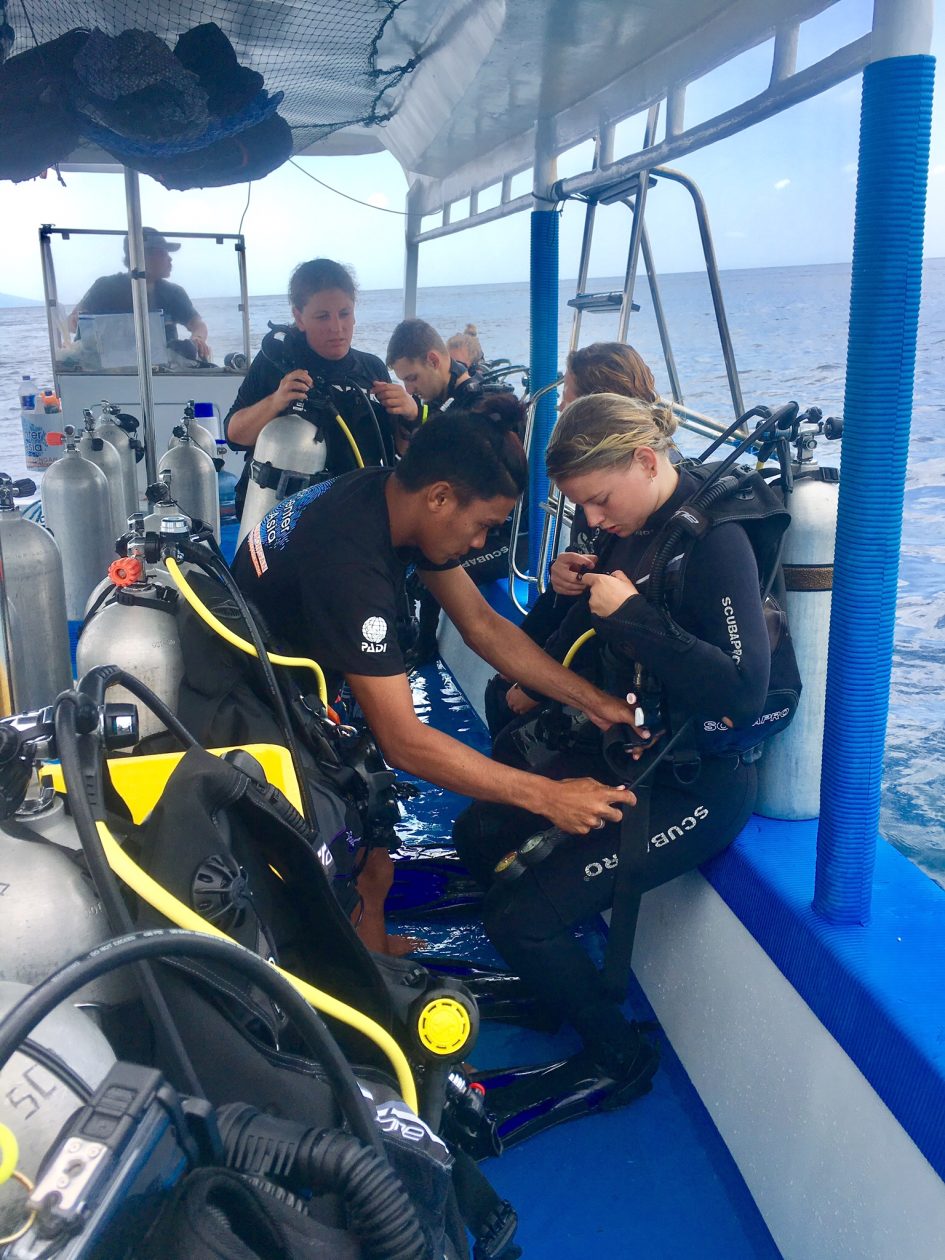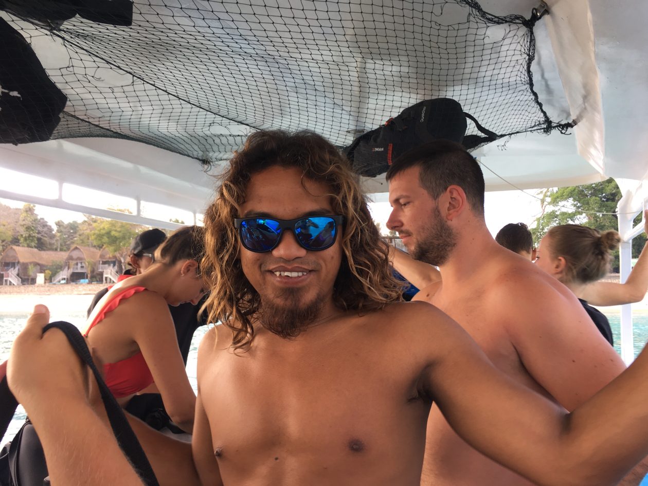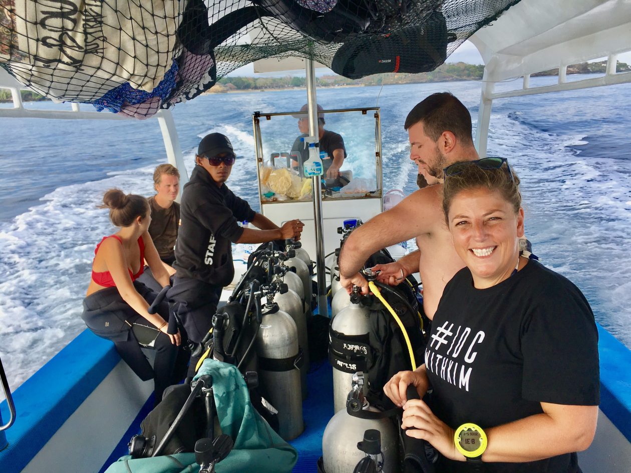 Vandaag heeft dochter Jools haar eerste duik in open water gemaakt. Vriendin Melanie werkt bij Scuba Center Asia op Mushroom Beach (Nusa Lembongan), dus dat voelde lekker vertrouwd. Voor ons is het twintig jaar geleden dat we voor het laatst doken. Ik zou liegen als ik zou zeggen dat ik geheel onbevreesd achterstevoren het water in lazerde.