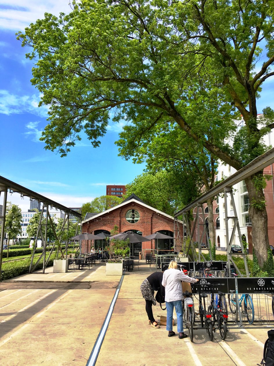 Op de fiets verken je een stad altijd het makkelijkst, vind ik. De zon scheen en een lichte bries maakte het aangenaam om op ons gemak door de stad te cruisen. Tilburg was vroeger de textielhoofdstad van Nederland en de grootste werkgever in de regio. Tegen de oude fabriek waar het TextielMuseum in zit, heeft de architect een glazen entree geplaatst. Dat is goed gelukt, het ziet er top uit.