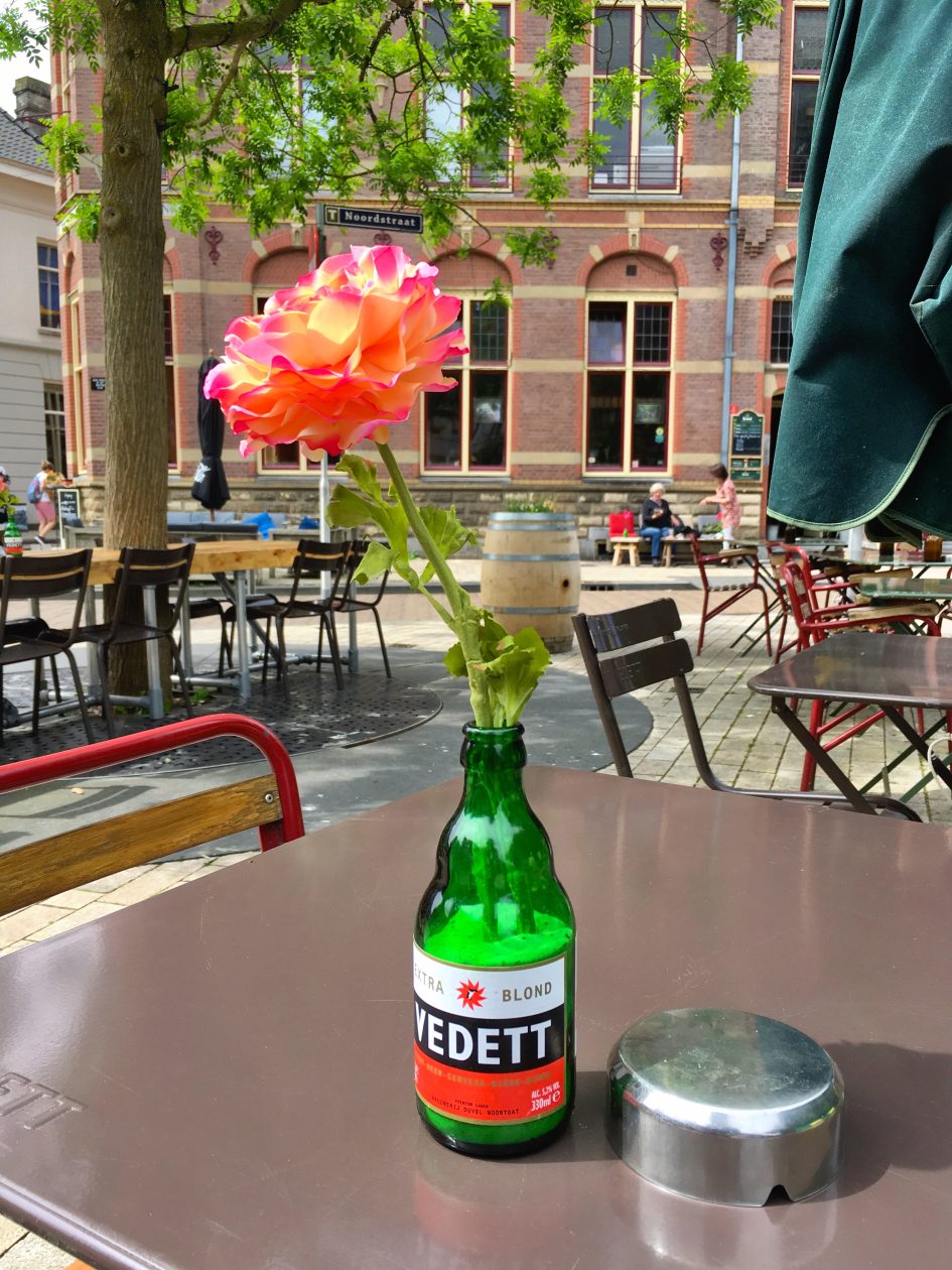 Echt een aanrader, en als dochterlief ons er niet aan had herinnerd dat we ook nog zouden gaan shoppen in de 013-straatjes, dan hadden we er vermoedelijk nog gezeten. Toffe platenzaak, leuk kledingwinkeltje, lekker eettentje; je slingert en slentert op je gemak door het centrum van Tilburg. Een paar uur later zit ik met een groene kip en een glas bier op een gezellig terras. Proost !