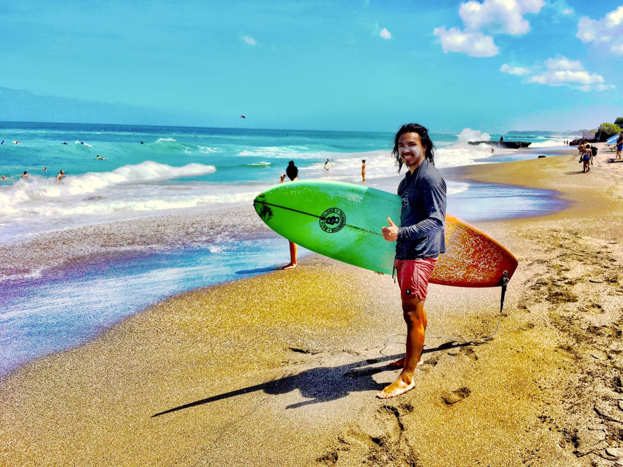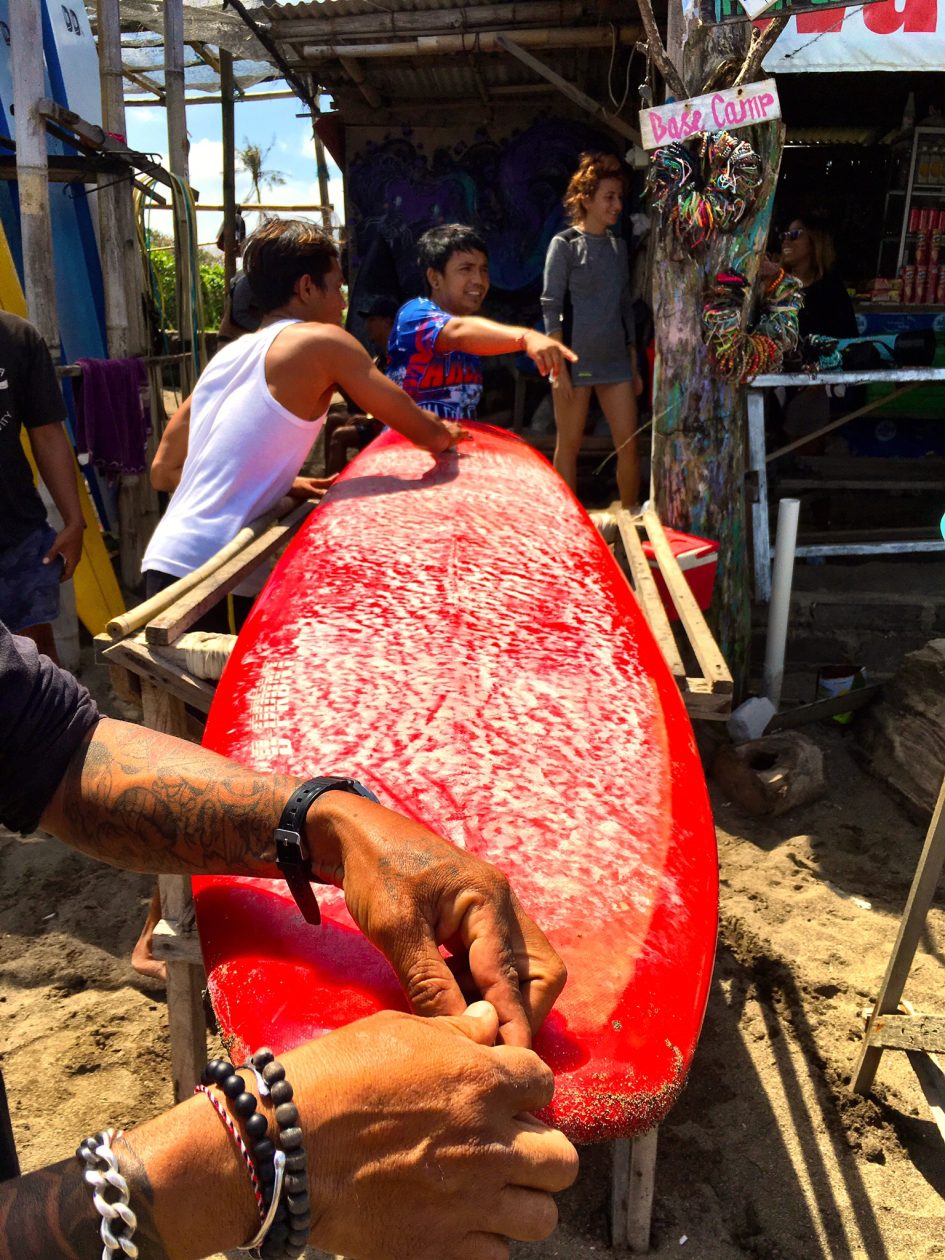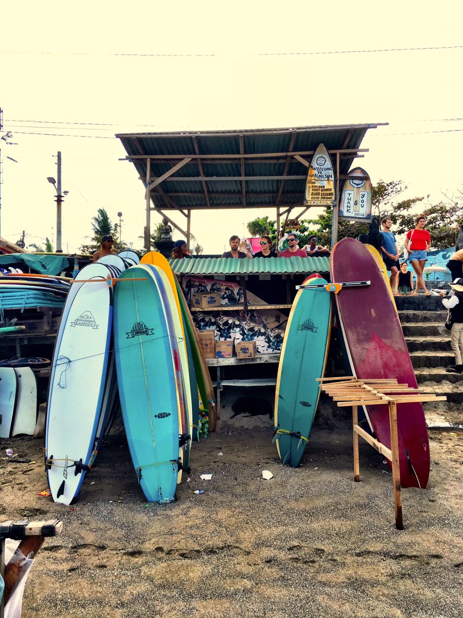 Waar Ubud het centrum is voor de zinzoekers, is Canggu het absolute surferswalhalla. Droomgolven die maar blijven rollen. Ik lag heel even in die blauwe wasmachine, maar moest al snel op zoek naar mijn conditie. Het leek me dat ik de meeste kans had om die te vinden vanaf mijn strandbed.