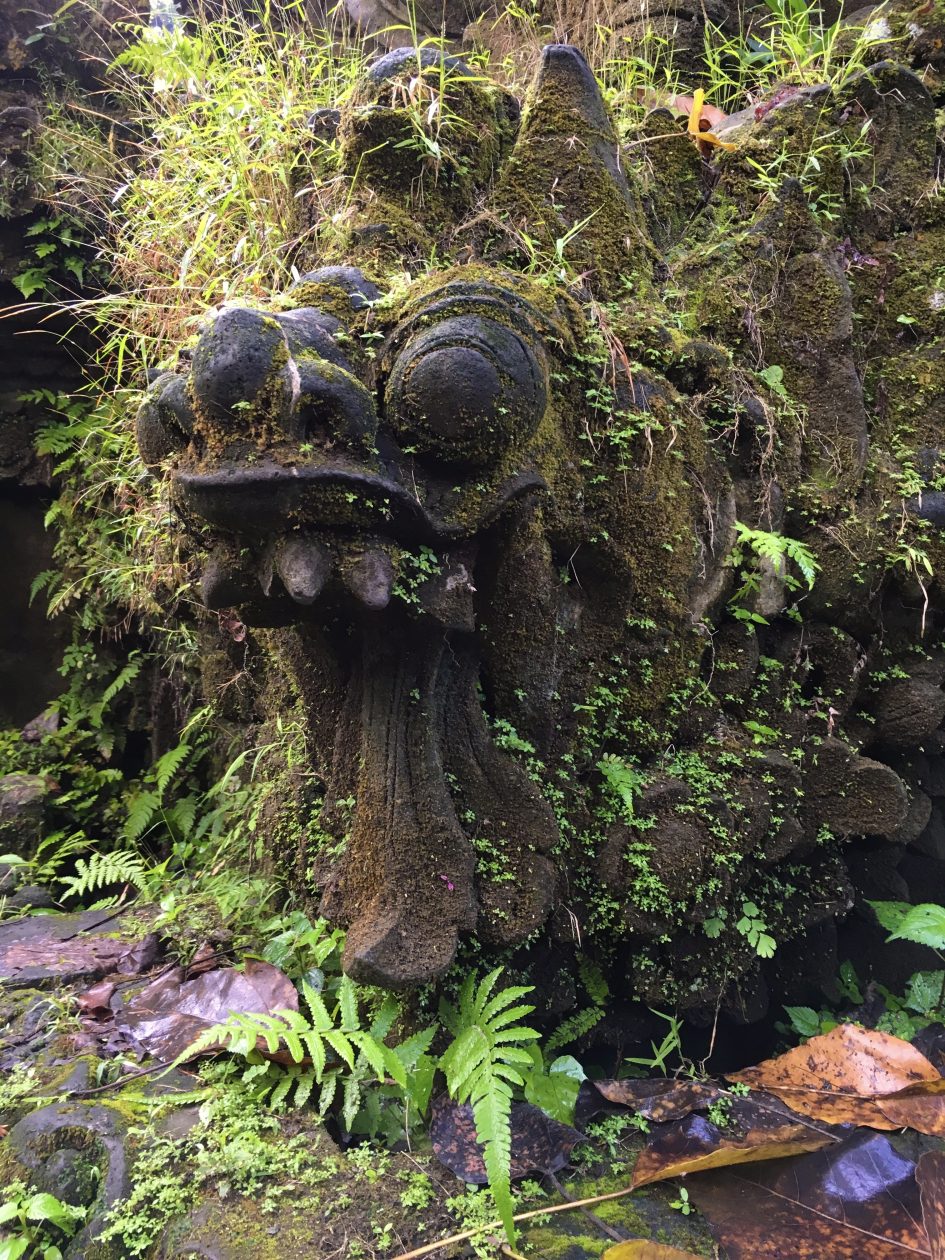 “Jools ligt nog in diepe slaap als we de deur dichttrekken en de scooters starten. Ubud ontwaakt, hanen kraaien. Het beginpunt van de route is praktisch om de hoek. Even de Sungai Wos Rivier over en de eerste links bij Ibah Villa’s. De Gunung Lebah Tempel is het beginpunt van de Campuhan Ridge Walk. Een miljoen kleuren groen onder een blauwgrijze hemel; de junglegeluiden moet je er even bij fantaseren.”
