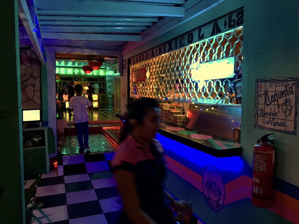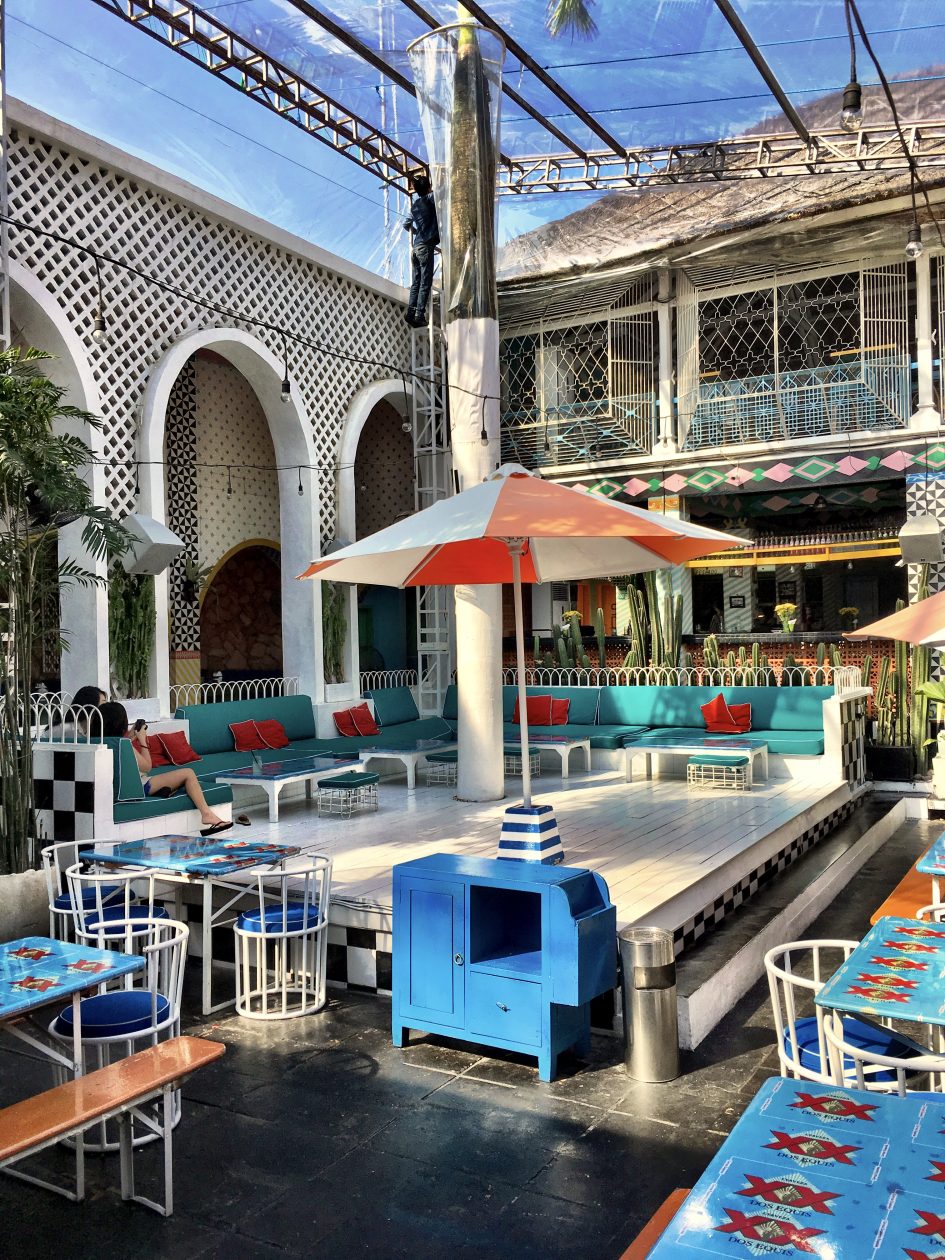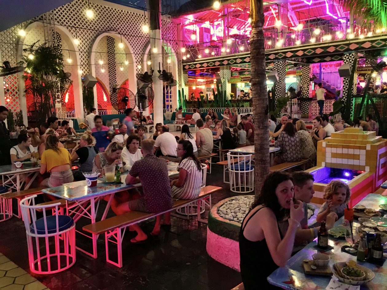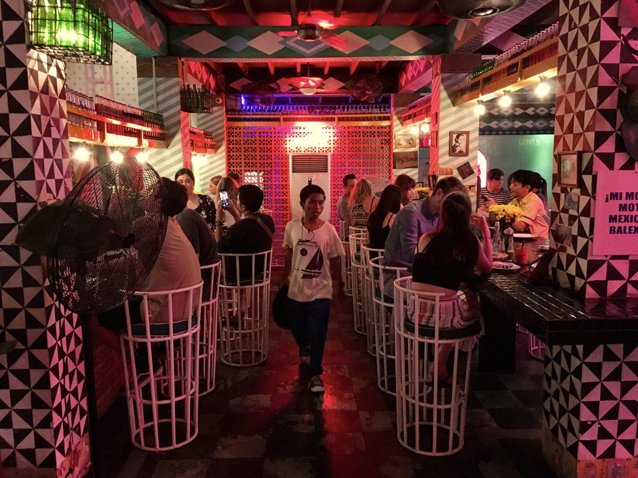 Welkom in de Latino kitsch heaven, waar al het licht uit een neonkruis op je neerdaalt en Maria een tequilamerk is. Quentin Tarantino staat achter de draaitafel en John Travolta kan elk moment arriveren. Cocktails zijn de drank, ik vind het prima. Viva Bali!