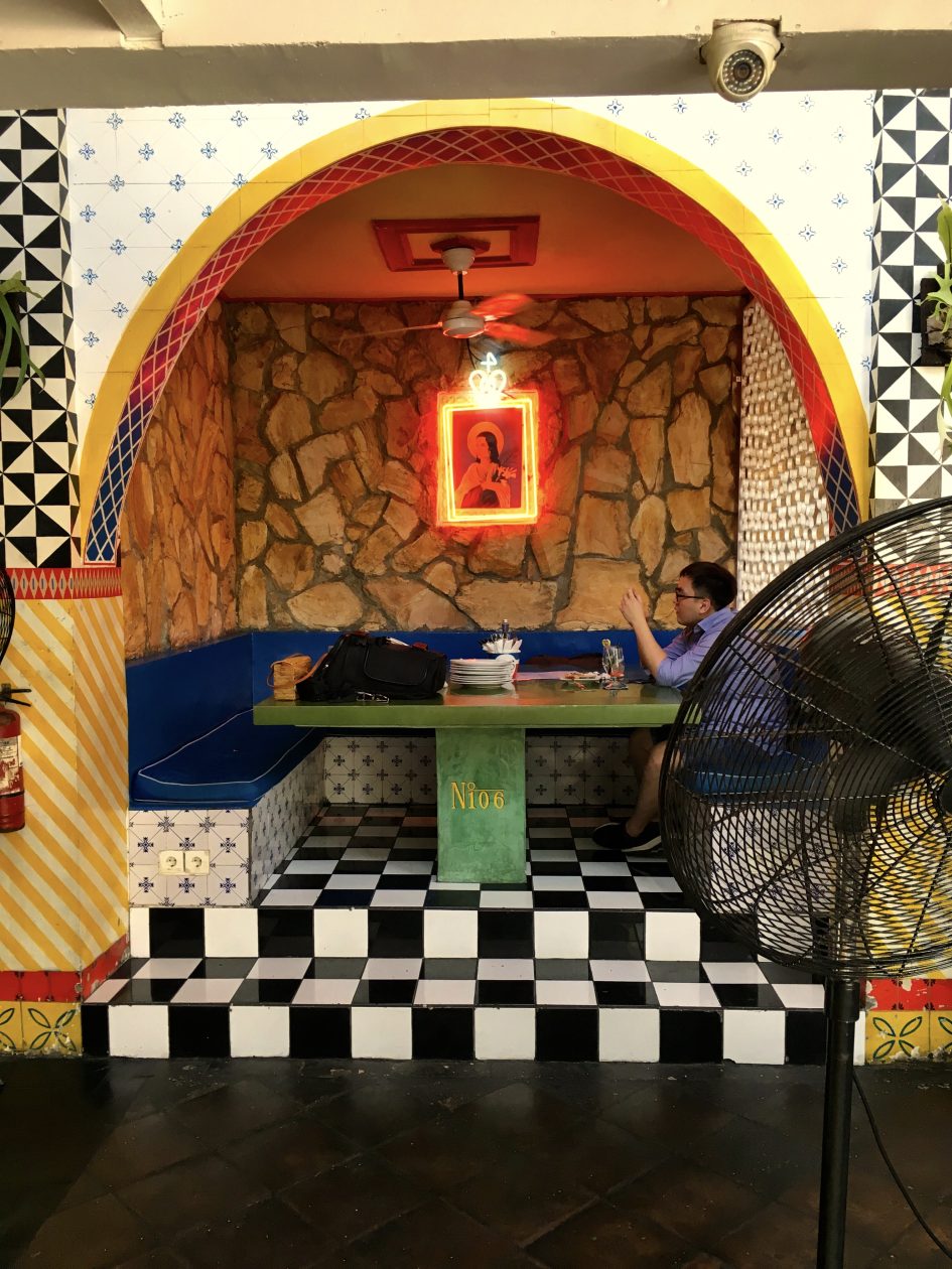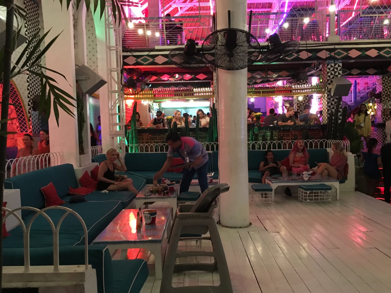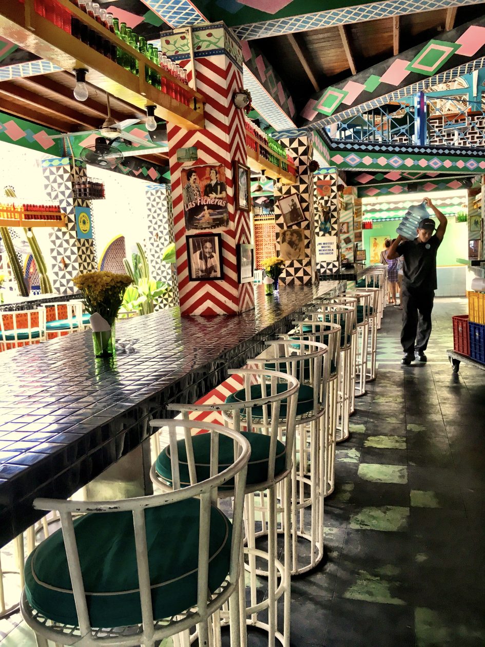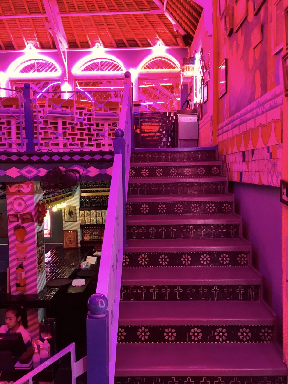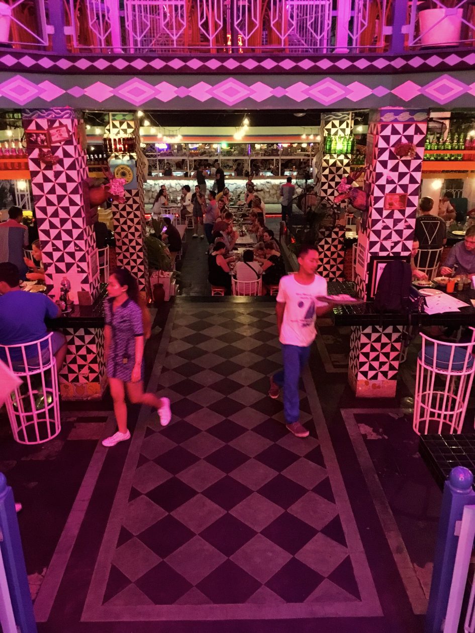 Welkom in de Latino kitsch heaven, waar al het licht uit een neonkruis op je neerdaalt en Maria een tequilamerk is. Quentin Tarantino staat achter de draaitafel en John Travolta kan elk moment arriveren. Cocktails zijn de drank, ik vind het prima. Viva Bali!
