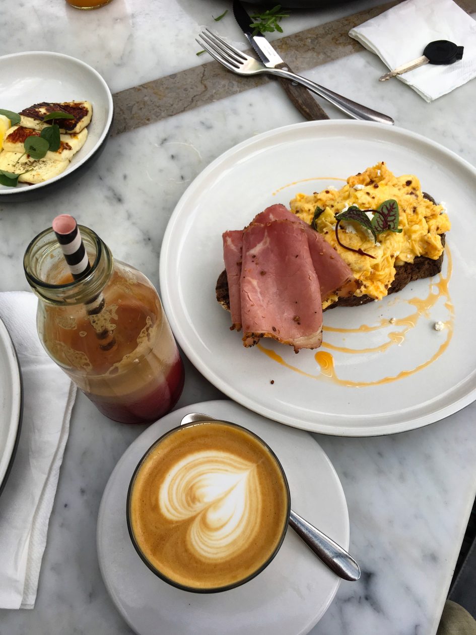 • En voor mij de Chilli Cheese Scrambled Eggs en een Latte.