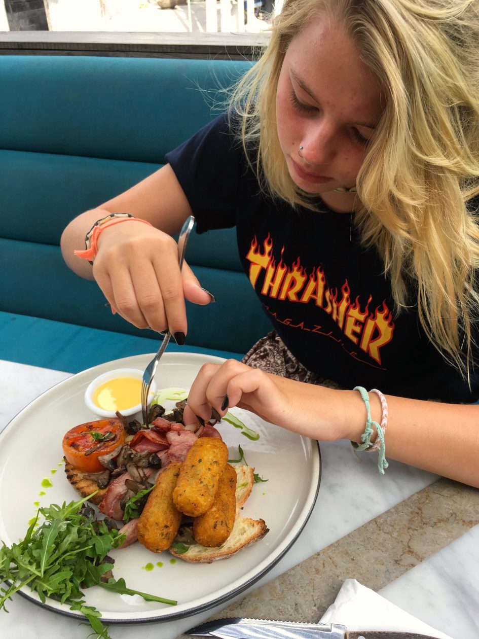 • Sisterfields Big Breakfast en een verse orange juice voor Jools.