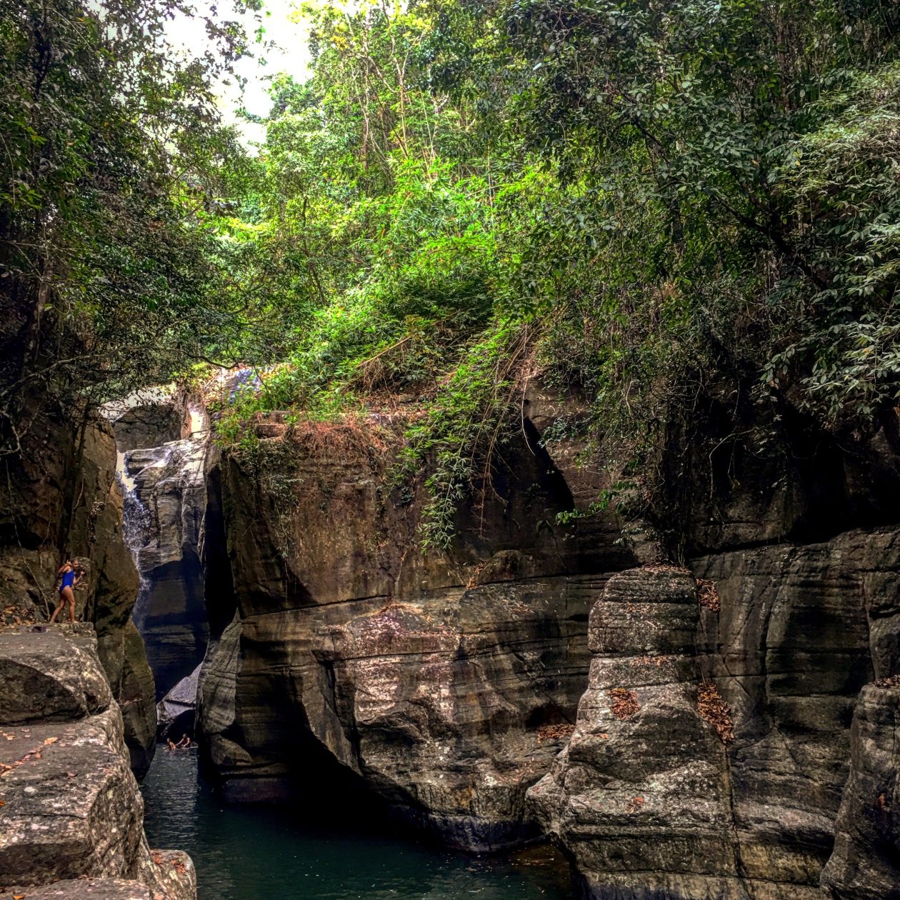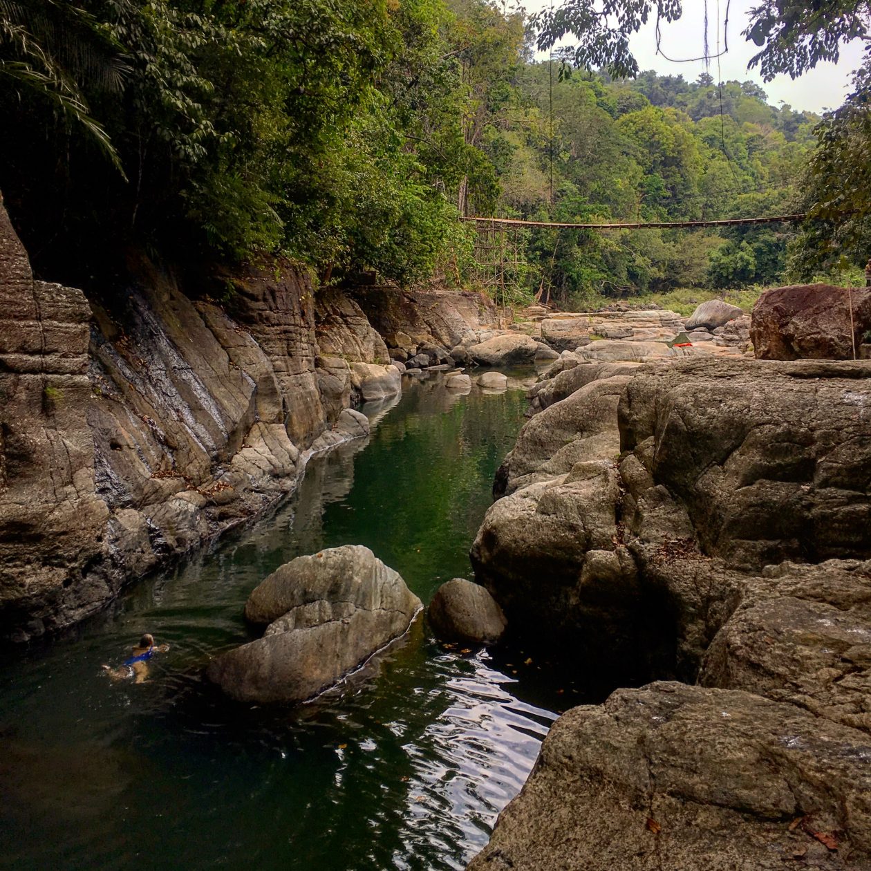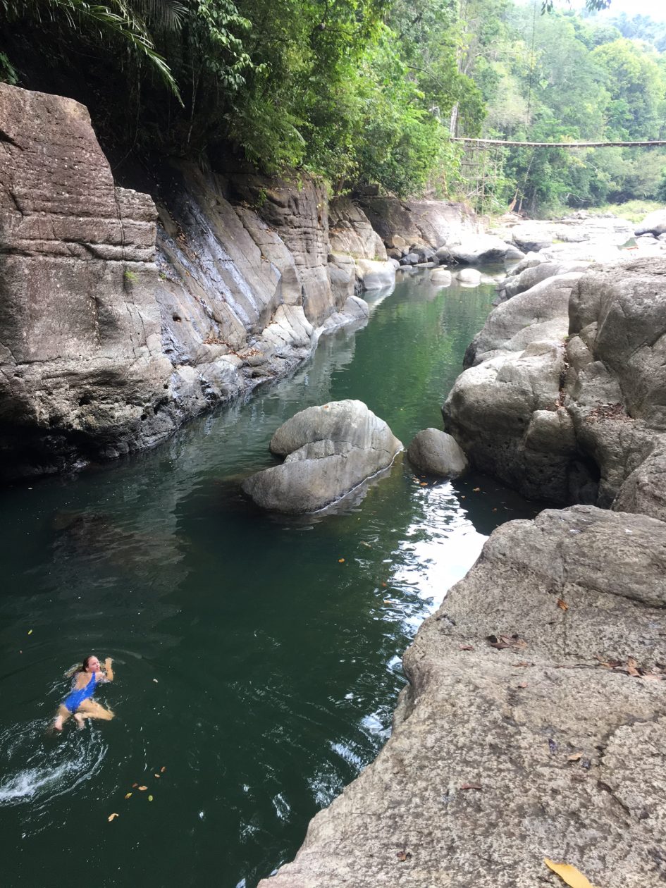 Man, alleen de tocht ernaartoe is al onbetaalbaar. Zelfs als de waterval verdampt was, waren we toch nog dik tevreden geweest. Wij zijn van de generatie Indiana Jones en dochter Jools is van de lichting Lara Croft. Touwbrug / lianen / waterval = Blije Eikels.