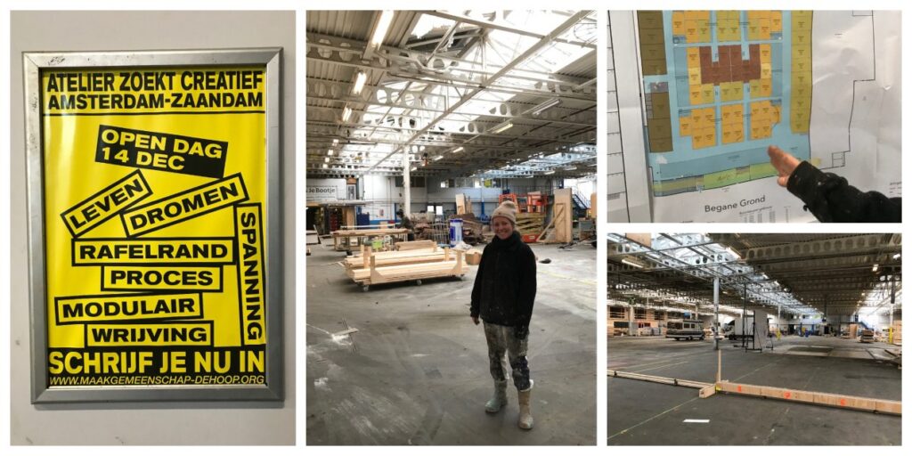 Ik kreeg even een rondleiding door De Hoop van Sanne (Insane Decorations). Wat een lekkere, swingende plek! En inderdaad: een onvervalste rafelrand. Ik voelde me meteen op mijn plek. Er wordt druk getimmerd, geschilderd en al gewerkt door tal van kleine zelfstandigen. Een supergoede sfeer. Als je op zoek bent naar een betaalbare werkplaats of atelier, check dan even ‘Maakgemeenschap De Hoop’.