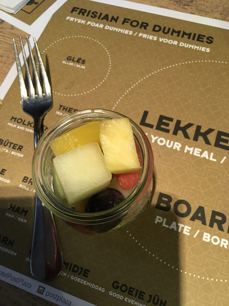 Waar we nu aan een puik ontbijt zitten, zaten we gisteravond met een glas wijn naar ‘Jord, de stem van Leeuwarden’ op gitaar te luisteren. Blijer kun je ons niet maken. Livemuziek, wijntje en ouwehoeren in een prima tent. Beter wordt het niet. Even noteren: Post-Plaza Hotel & Grand Café in Leeuwarden.