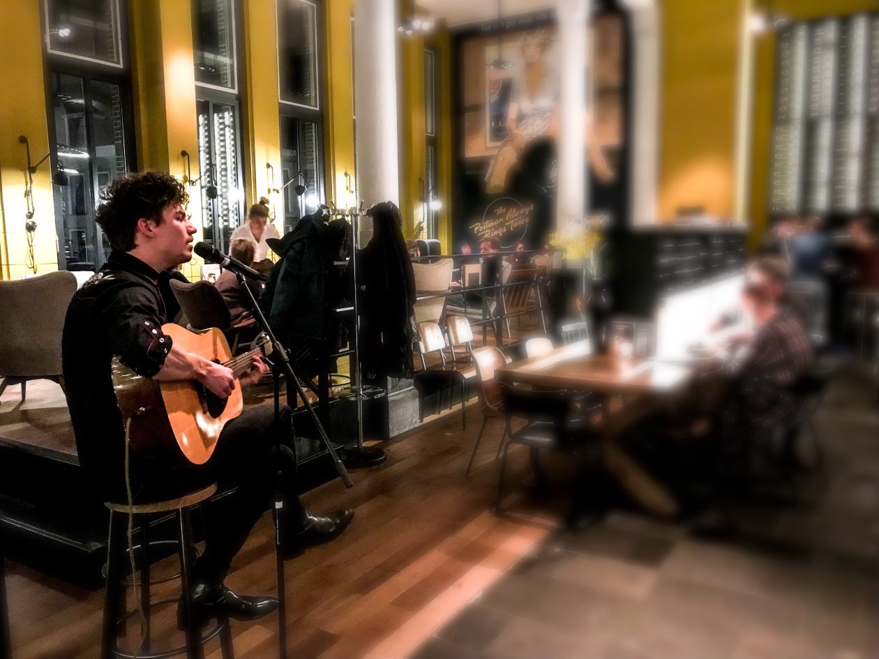 Waar we nu aan een puik ontbijt zitten, zaten we gisteravond met een glas wijn naar ‘Jord, de stem van Leeuwarden’ op gitaar te luisteren. Blijer kun je ons niet maken. Livemuziek, wijntje en ouwehoeren in een prima tent. Beter wordt het niet. Even noteren: Post-Plaza Hotel & Grand Café in Leeuwarden.
