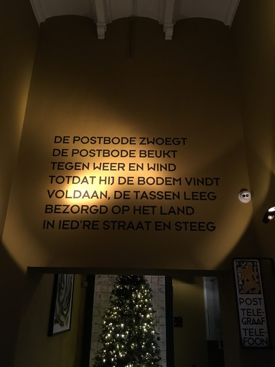 Goedemorgen. Wakker worden in Leeuwarden is tof. Een donzen droombed en een douche als een wolkbreuk. Het voormalige postkantoor is met liefde en zorg veranderd in een Grand Café, restaurant en hotel. Gebouwd in een tijd dat mannen van staal waren, de gulden nog een piek was en de winters zonder uitzondering streng waren.