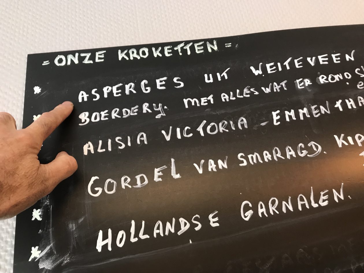 De hoop was gevestigd op de aspergekroket. Een handgemaakte seizoenskroket, regelrecht uit de hemel neergedaald. Gemaakt en bedacht in Nieuw-Weerdinge. Hij stond op het bord gekrijt. Geluk was ons deel.