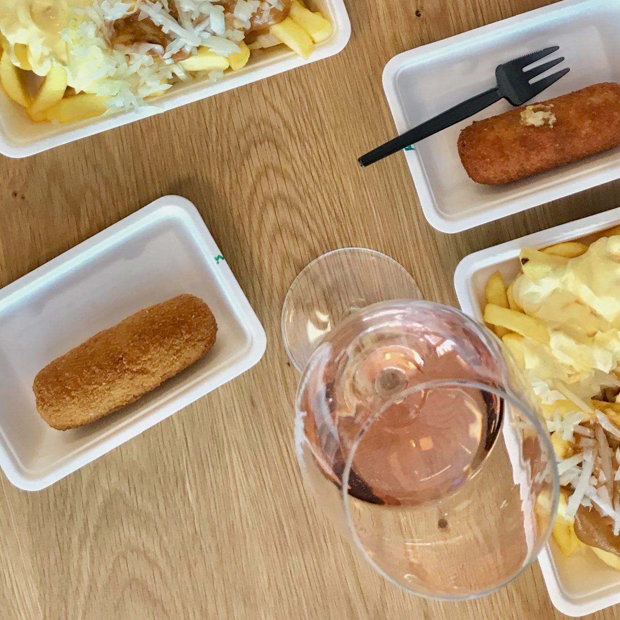 Het is ook de enige snackbar die ik ken waar je champagne en uitstekende witte wijn en rosé kunt kopen. Proost! (Je kunt ze trouwens ook gewoon online bestellen).”