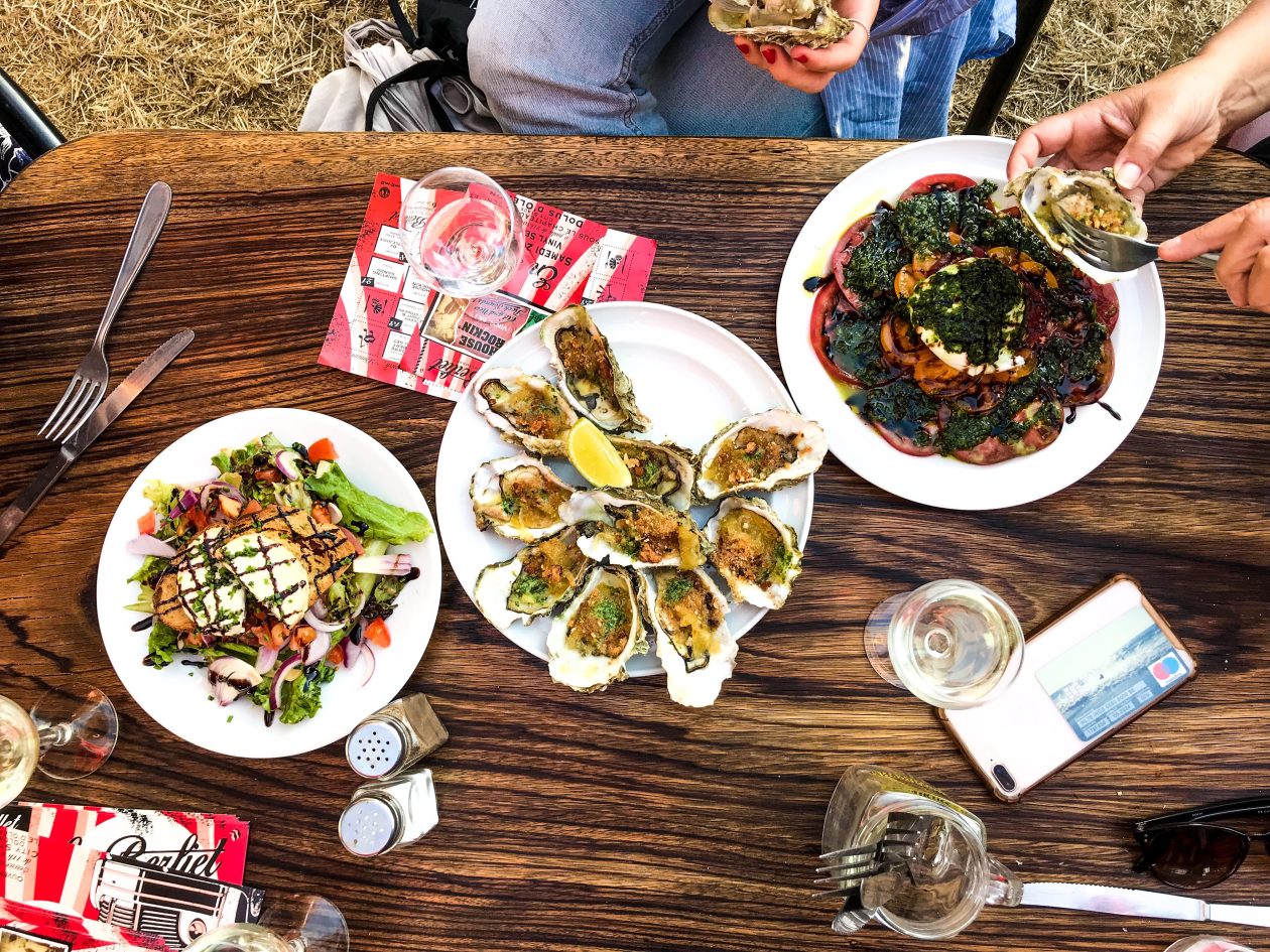 Met de zon op mijn kop, slurpen van mijn wijn en lekker lui in een stoel hangen, gaat me nu na een week vakantie steeds beter af. Ik begin er lol in te krijgen. Ondertussen komen er borden vol lekkers uit de keuken en de gasten die hier werken zijn werkelijk magnifiek. Wat een lekker sfeertje en wat een leuk personeel. Het eten is uitstekend (neem vooraf de oesters) en de glazen worden nog eens bijgevuld. Hier hou ik van, dit vind ik tof.