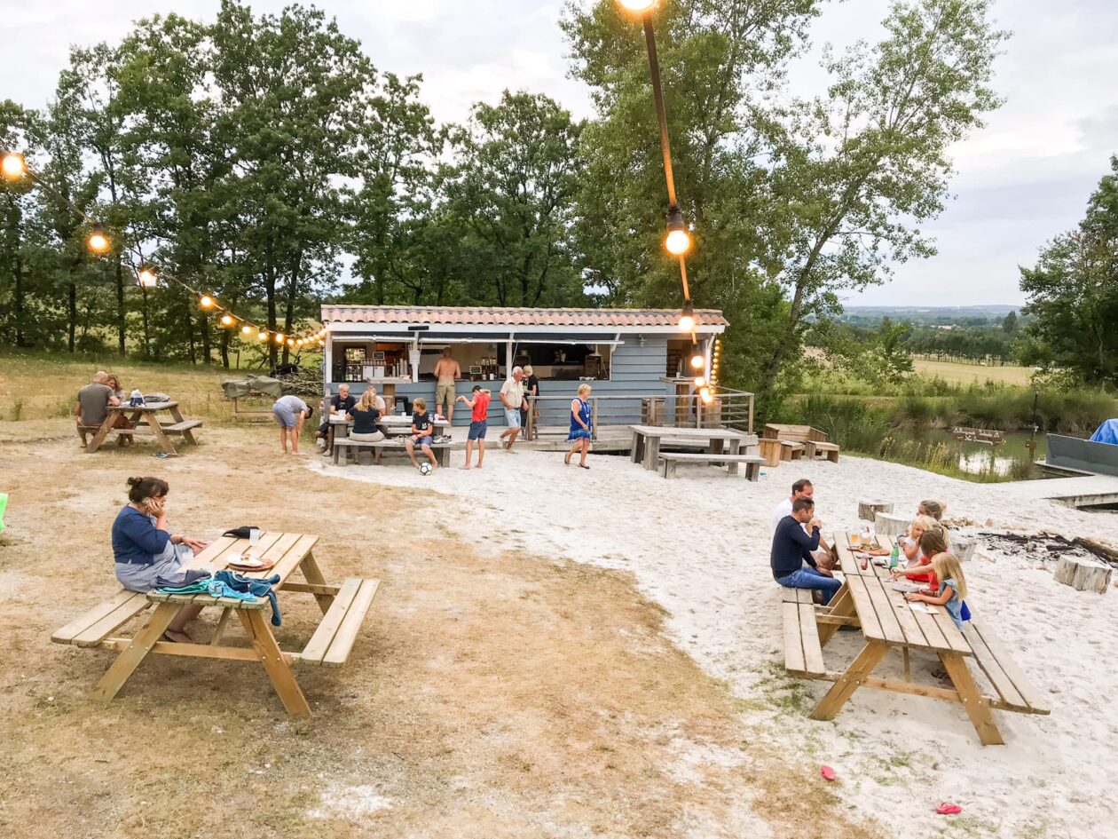 Zuid-Frankrijk: waar de wijn uit de kraan komt en rijpe perziken in je schoot vallen. Waar pétanque gespeeld wordt in plaats van jeu de boules en waar je de ochtend begint met een grand café au lait en een knapperige croissant. In dat zuiden ligt camping La Parenthèse – Les Ormes. Een fantastische plek met schaduwplekken voor je tent en camper, of je huurt er gewoon een kant-en-klare tent of huisje. Er is een zandstrand waar ’s avonds een kampvuur brandt, je een pizza kunt bestellen en ademloos kunt toekijken hoe de zon wegzakt.