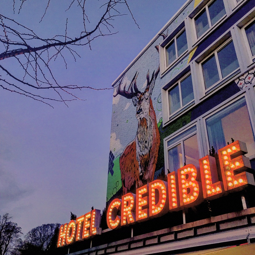 Hotel Credible op zondag. Een DJ staat lekker met vinyl te stoeien. Wij zakken weg in een blitse bank en slurpen aan een drankje. De inrichting is lekker “grote stad hip”, met een old school videogame in de hoek en swingende, toffe en vlotte bediening. De klandizie is van jong tot oud en van geboren in Nijmegen tot ver over de grens. Het voelt als een huiskamer, alleen dan een hele grote. Het hotel zit boven het restaurant/café met fijne kamers die zijn ingericht met humor. Wakker worden in Nijmegen (de stad ontwaakt) met een bak Credible-koffie voor je neus is fijn. Hup, boek dat hotel!