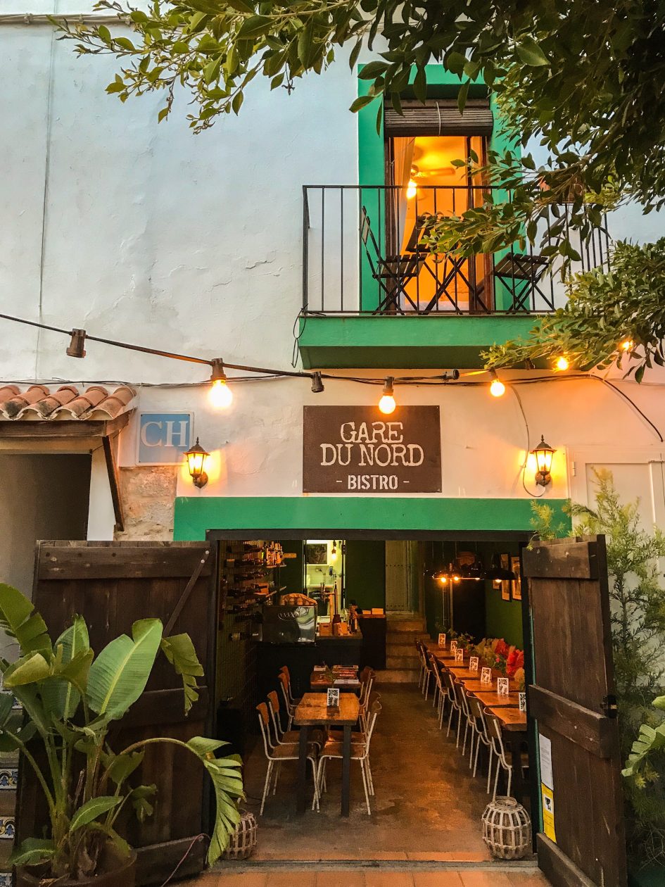 We hebben een lelijke eend gehuurd. Jeugdsentiment. Er is geen auto die een rotonde eleganter neemt dan de 2CV. Gare du Nord, onze slaapplek voor deze week, ligt in Sant Joan de Labritja in het noorden van Ibiza. Man, wat een fijne plek. Onder het hotel zit een te gek restaurant met een lekkere tuin. De ober schenkt ondertussen een glas witte wijn in. Proost.