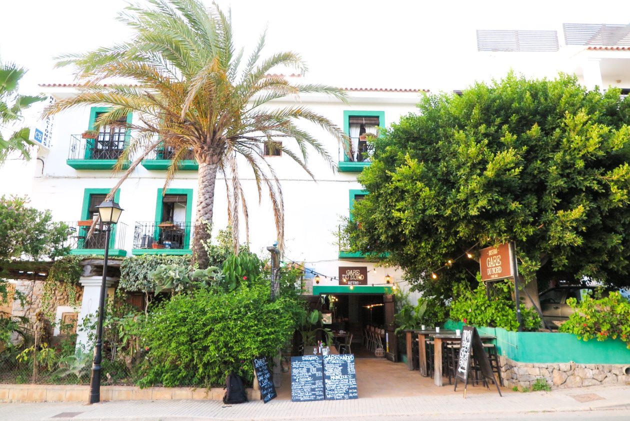 We hebben een lelijke eend gehuurd. Jeugdsentiment. Er is geen auto die een rotonde eleganter neemt dan de 2CV. Gare du Nord, onze slaapplek voor deze week, ligt in Sant Joan de Labritja in het noorden van Ibiza. Man, wat een fijne plek. Onder het hotel zit een te gek restaurant met een lekkere tuin. De ober schenkt ondertussen een glas witte wijn in. Proost.