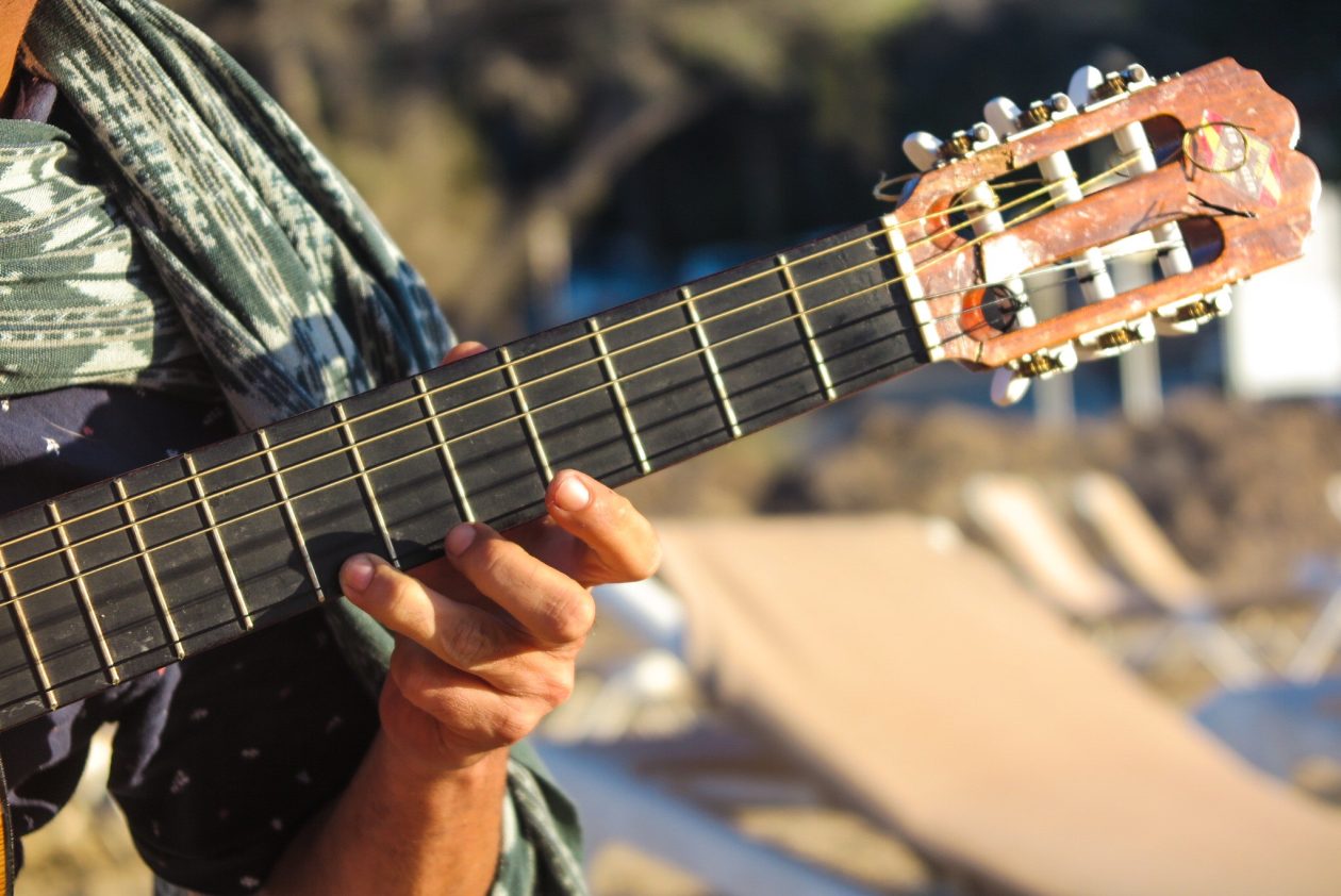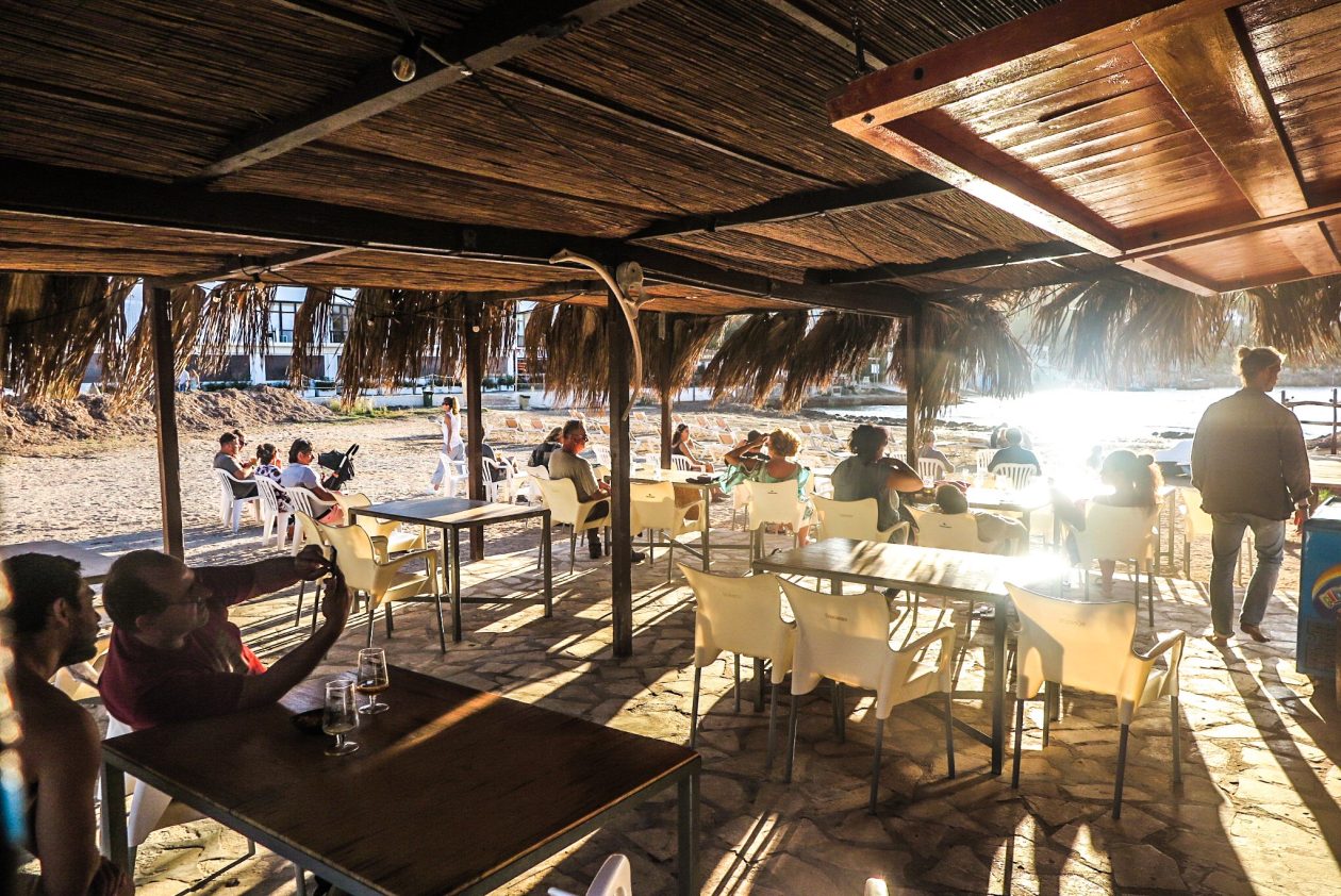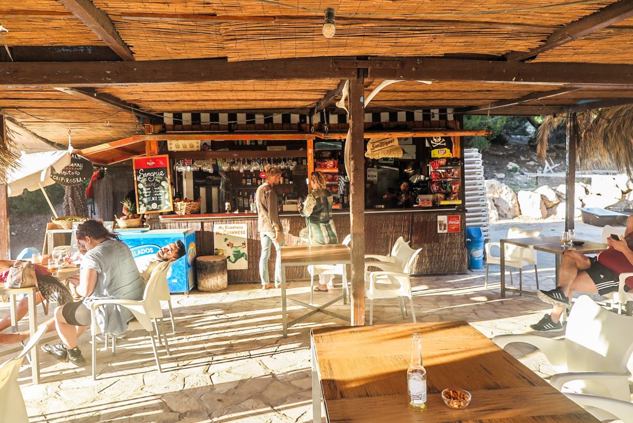 De terrasstoelen staan opgesteld als in een theater, met als hoofdact de ondergaande zon. Achter de bar staan een paar vrolijke gasten cocktails te mixen. Een stevige Duitser neemt ritmisch een slok bier en een haal van zijn sigaret: bier, sigaret, bier, sigaret. Fernando de gitarist, op zoek naar de zon, is ondertussen ook op het terras neergestreken. Door je toegeknepen ogen zie je in het felle licht de schaduwen langer worden, totdat de zon verdwenen is. Nog een laatste slok en dan de vraag: “Waar gaan we vanavond eten?” Het leven op Ibiza is plezierig eenvoudig. Salud!