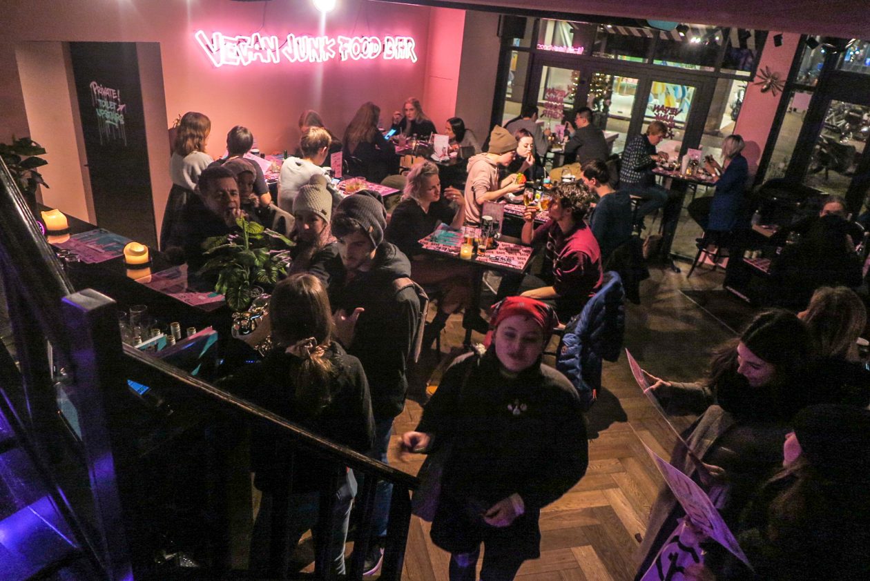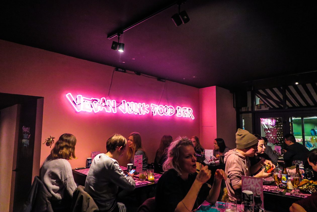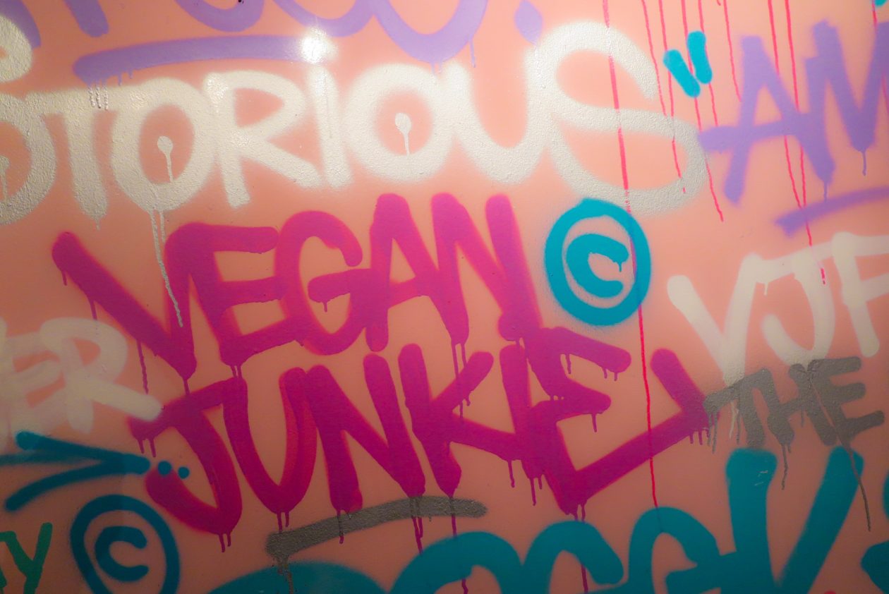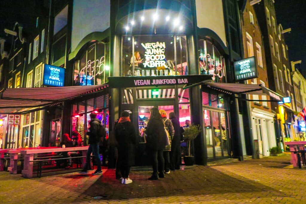 Naast Fat Phill’s Diner in de Reguliersdwarsstraat zit de Vegan Junk Food Bar. Alleen voor die naam al ga ik op zoek naar die tent. Dochter Jools en ik zijn “niet-religieuze omnivoren” en dat is handig, want dan mag je dus gewoon vegan, vegetarisch en eigenlijk alles wat je lekker vindt eten (ik kan het iedereen aanraden). Bij de buurman Fat Phill kan het niet vet genoeg en dat geeft net een lekkere balans in zo’n straat.