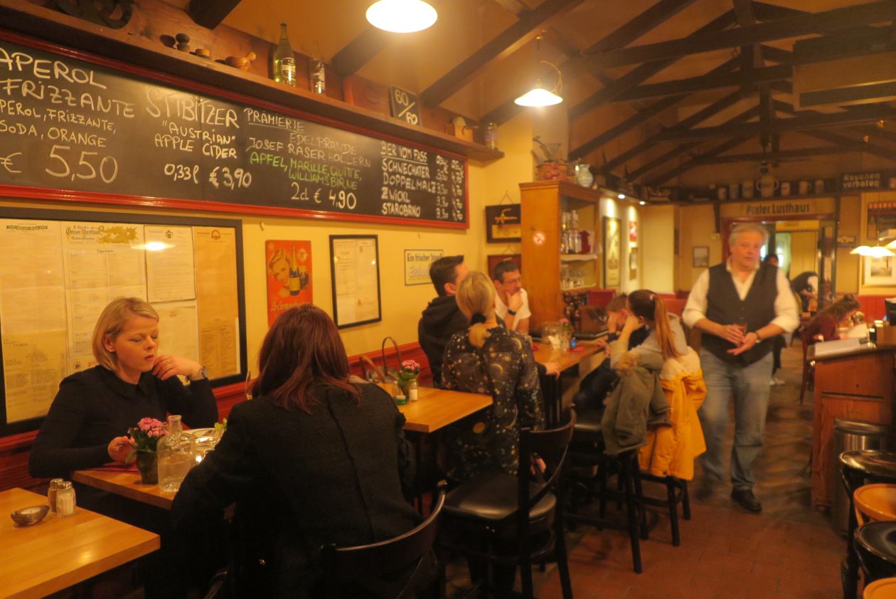 Tip van Rob. We zijn nog maar 24 uur in Wenen, maar ik weet nu al dat ze het hart hier op de juiste plek hebben wat eten en drinken betreft. Zeker als je van taart, koffie, kaas, vlees, wijn en pullen bier houdt. Qua restaurants is de keuze reuze. Vriend Rob is in Wenen kind aan huis en kan qua dorst doorgaan voor een Oostenrijker; logisch dus om hem om raad te vragen.