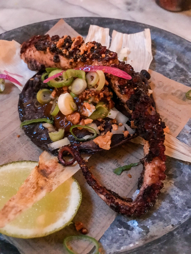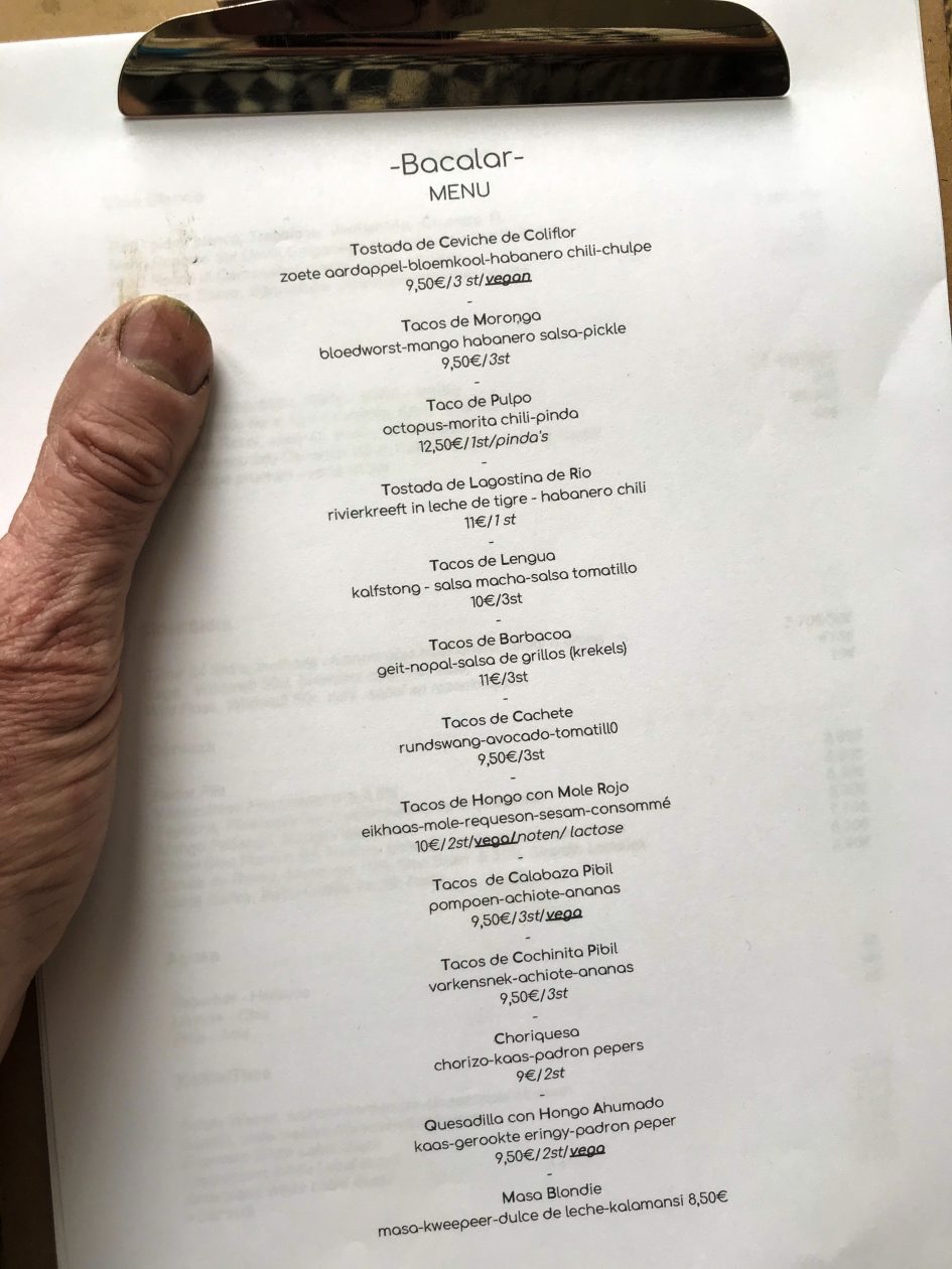 Voor een hap en een borrel kun je ook blind naar Noord afreizen. Man, het barst er tegenwoordig van de toffe tenten; de een na de andere wortelt zich in het beton. Taqueria Coba, de Mexicaan waar de mezcal tegen de plinten klotst, heeft er een verse amigo bij. Joachim de Buck, mede-eigenaar en oud-chef van Coba, is Taqueria Bacalar begonnen op een lekkere, rauwe, industriële plek grofweg schuin achter het Eye-gebouw.