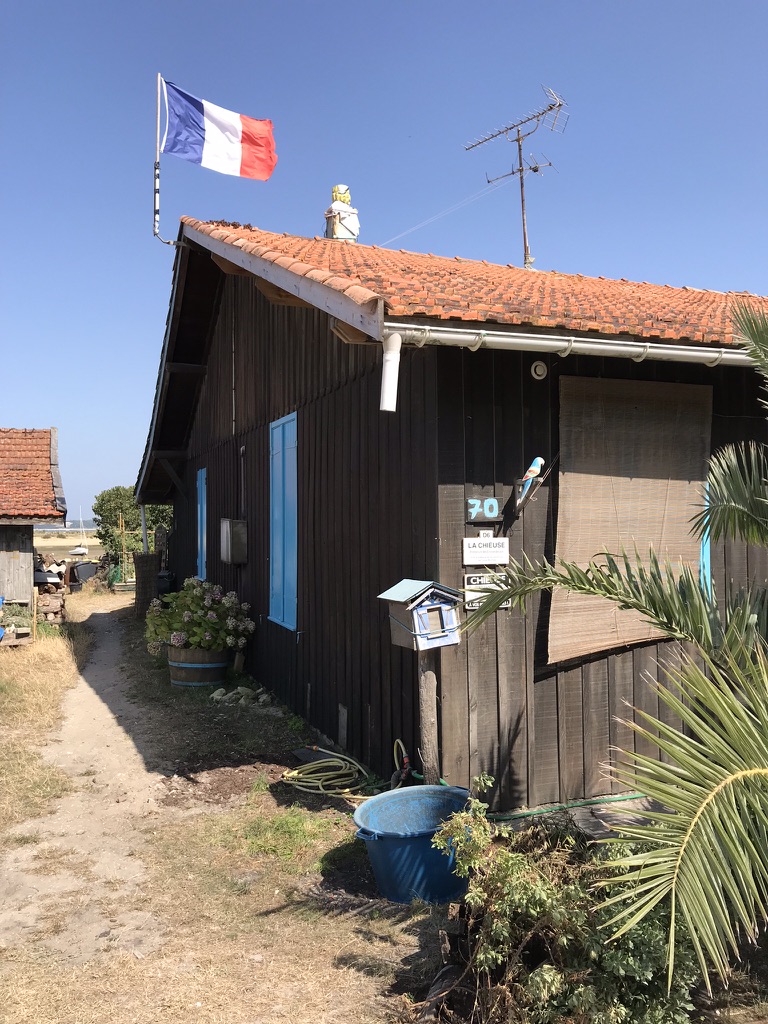 Later hoorde ik de reden van de ‘petite’ menukaarten. De restaurants (cabanes) zijn van de oesterboeren. Ze mogen wel direct uit de zee in hun schuurtjes oesters verkopen, maar geen ‘restaurantje spelen’. Voilà. Uit dezelfde bron hoorde ik dat dit stukje Bordeaux ook wel “de gouden vierkante meters” wordt genoemd, vanwege de krankzinnige huizenprijzen.