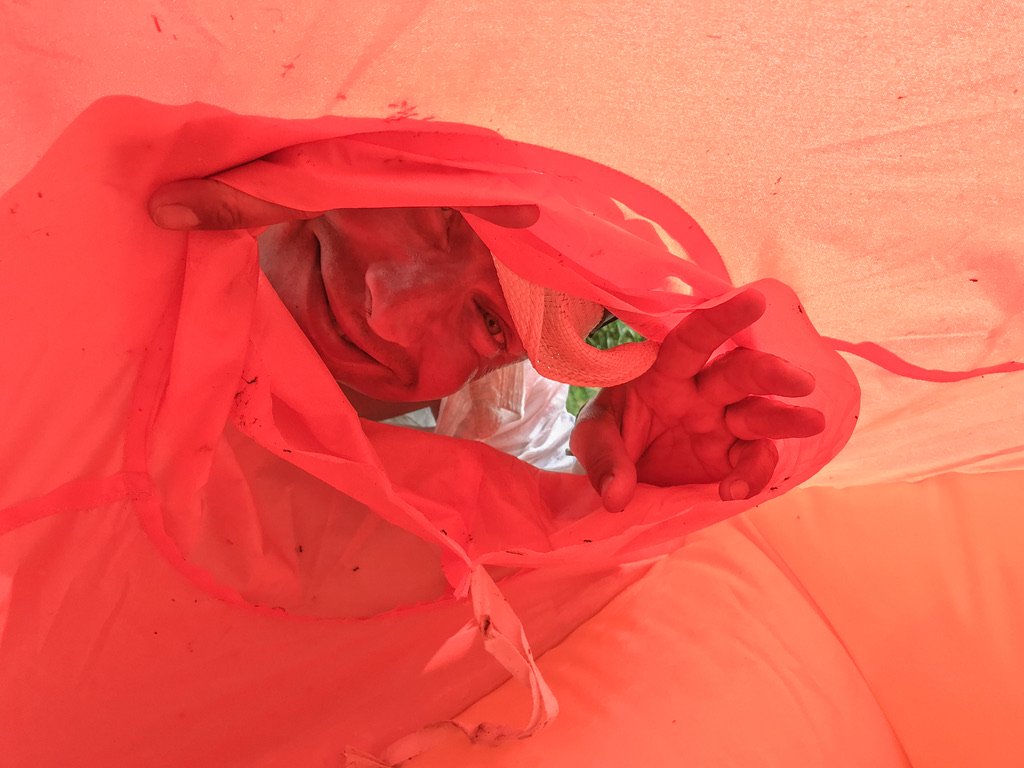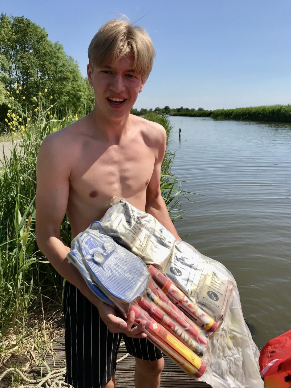 Je kunt niet boos worden op die gasten. Ik snap het heel goed; het was trouwens een kwaliteitsvuurpijl. Minutenlang zweefde hij langzaam naar de weides verderop. Als we echt in nood hadden gezeten, had deze pijl ons zeker gered. Het vlot bleek ook superleuk om te gebruiken als toffe tent met luchtbedden als wanden, of gewoon om vol te gooien met water als minizwembad.