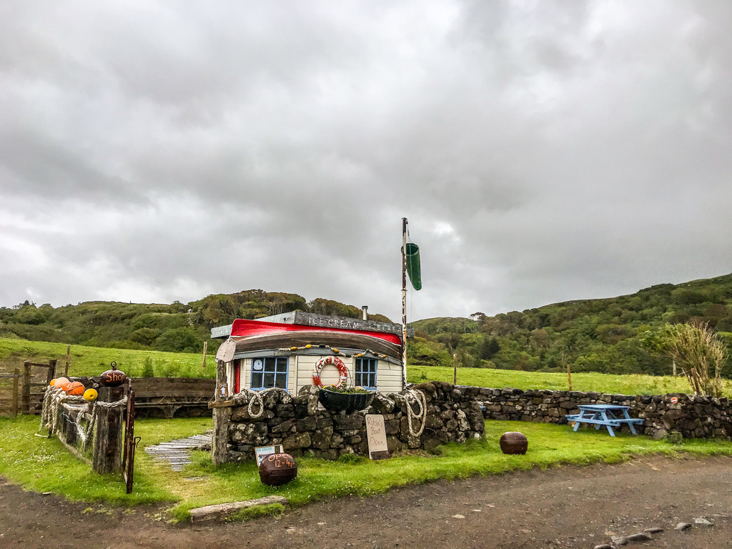 De toiletten bevinden zich aan de andere kant van de weg. Op 15 minuten lopen vind je een restaurantje en een art gallery. Bij de parkeerplaats aan de overkant van de baai is zelfs ijs met whiskysmaak te koop. Aan het einde van de dag gaan de kampvuurtjes aan en gaat de kurk eraf.”
