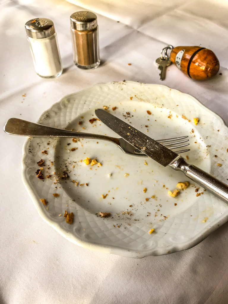 De kamersleutel aan een haakje in de gang, een tree kraakt onder mijn gewicht. De sanseveria’s in het restaurant groeien langzaam naar het plafond. Op de menukaart garnalencocktail vooraf en als toetje Dame Blanche. Een biljart naast de bar en de lounge voor krant en boek. De wereld verandert in rap tempo, Van der Werff blijft zichzelf. En dat moet zo blijven. Ober, schenk nog eens vol!