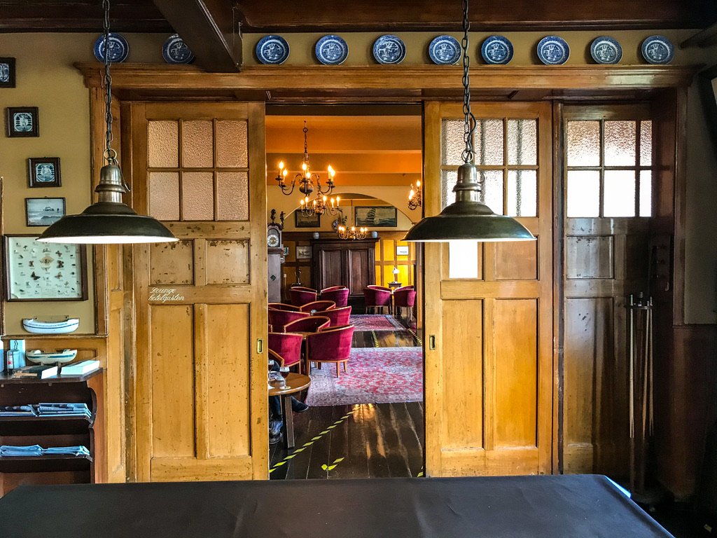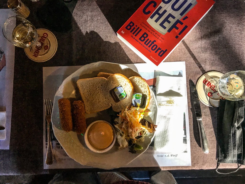 De kamersleutel aan een haakje in de gang, een tree kraakt onder mijn gewicht. De sanseveria’s in het restaurant groeien langzaam naar het plafond. Op de menukaart garnalencocktail vooraf en als toetje Dame Blanche. Een biljart naast de bar en de lounge voor krant en boek. De wereld verandert in rap tempo, Van der Werff blijft zichzelf. En dat moet zo blijven. Ober, schenk nog eens vol!