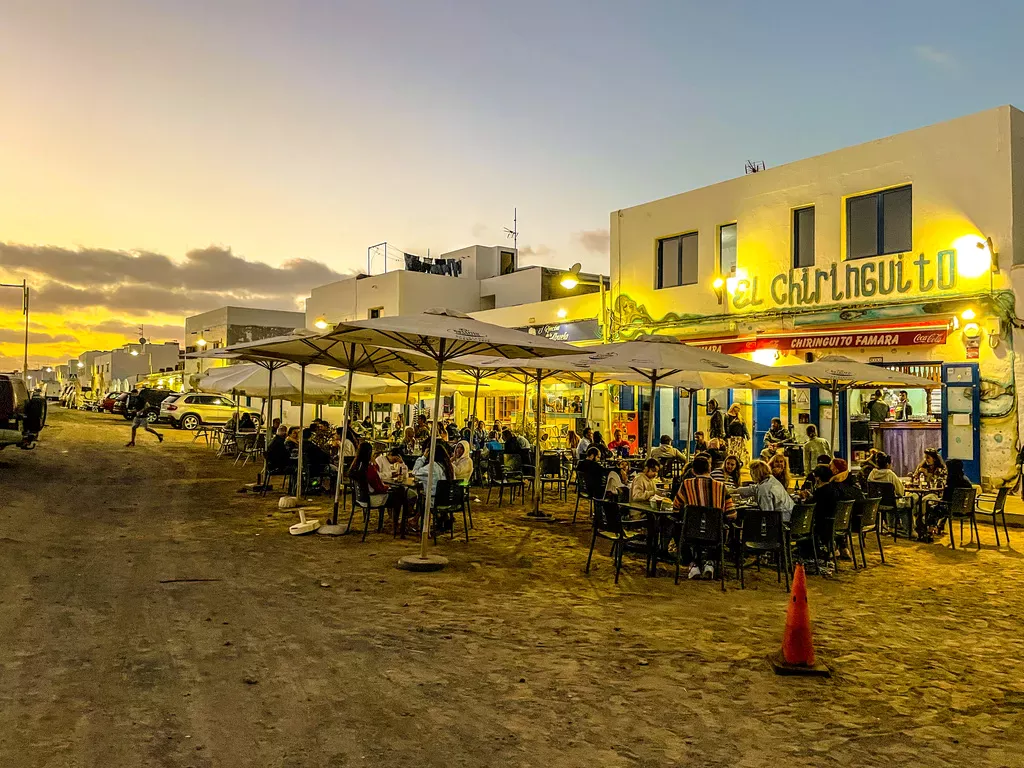 Eten en drinken Eten en drinken in Caleta de Famara is een kwestie van keuzes maken; het barst van de restaurants in de zanderige hoofdstraat. De Teleclub ligt iets buiten het centrum en wordt aan het einde van de dag bezocht door de locals. Je kunt er eten en drinken voor een appel en een ei en de sfeer is gezellig Spaans onder het tl-licht.