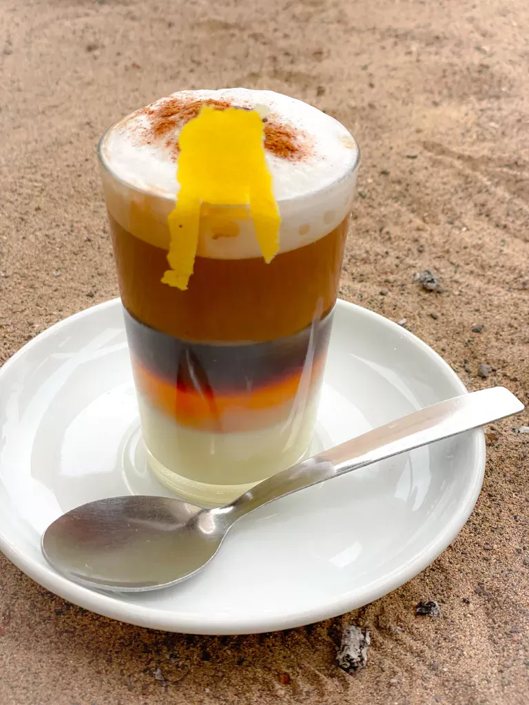 Barraquito coffee Eigenlijk is dit een vloeibaar toetje. Barraquito is koffie met laagjes en bestaat uit espresso, opgeschuimde melk, gecondenseerde melk en een scheut Licor 43.