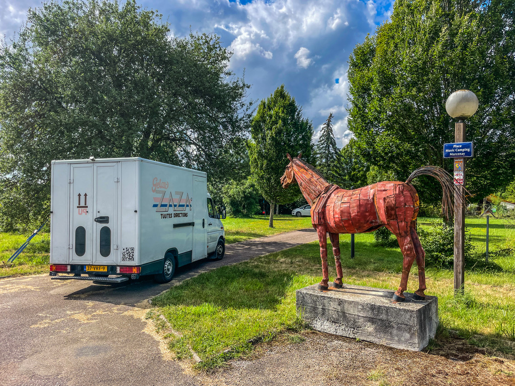 Dirk de eigenaar van muziekcamping Les Crebes du lac de Marcenay , nodigden ons uit voor een nacht blues in het bos – bij aankomst lag Dirk te pitten in de buurt van de receptie – een relaxter welkom kan je niet krijgen – zijn oase ligt aan route de Cremante , ook al een goed teken vind ik zelf en iets boven de Morvan aan de D965 – aan het bos met open plekken en plenty aan schaduw ligt een fijn meertje – voor de directe verkoeling voor de oververhitte verse gasten is er een zwembadje – en voor de ziel wordt er wat piano gespeeld – het is nog te vroeg voor de blues – als de schemer binnen sluipt begint de bas te lopen en vallen de gitaren en drum hem bij – aan de bar is de dorst snel gelest en “Brown eyed girl” gaat er lekker in – na een paar glazen wijn en een golf van akkoorden is mijn kussen de fijnste plek en daal ik binnen een seconde af naar dromenland –