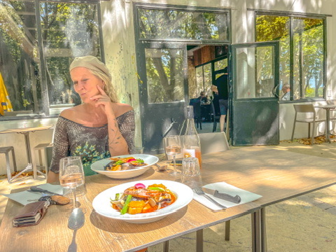 We lunchen bij Le Chalet des Sports , plat du jour voor 20,- vanaf het terras zien we de Arenes de Beaucaire – hier vind de Franse variant van het stierenvechten plaats – fijne variant voor de stier want hij brengt het er levend vanaf –
