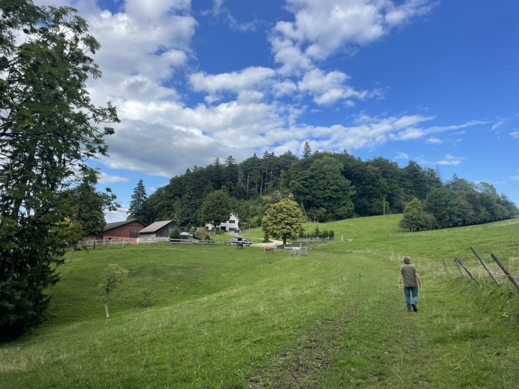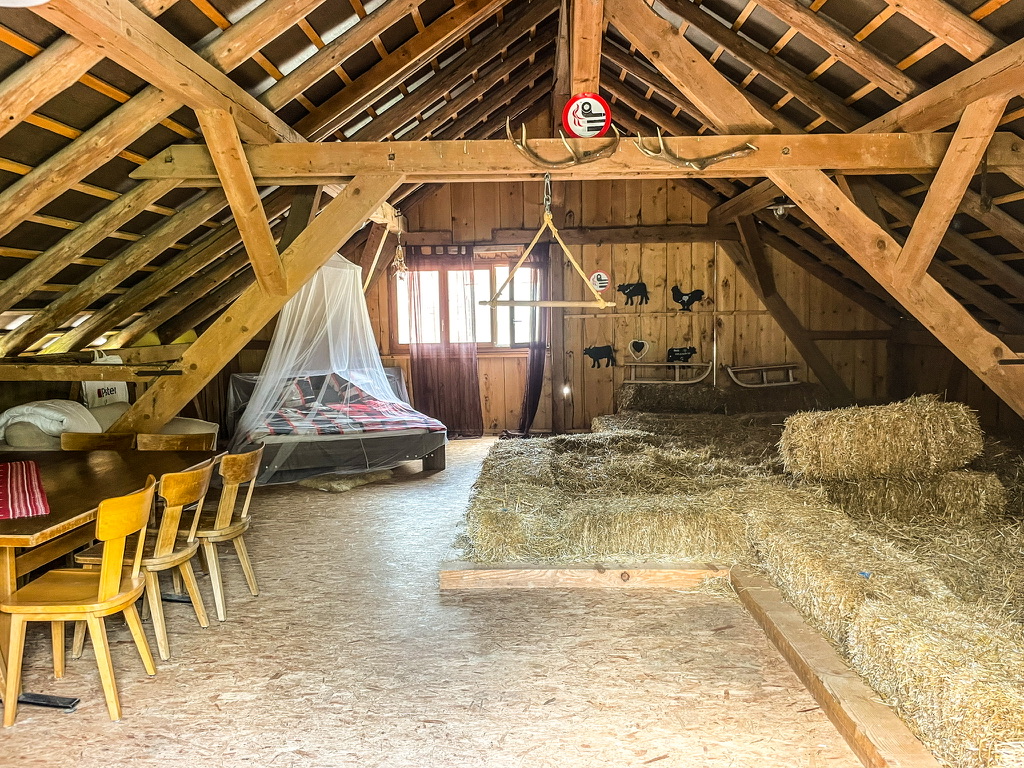 Aan het einde van de doodlopende weg staat restaurant/café/hotel Stierenberg bij het dorpje Bretzwil (prachtig, en precies zoals je het verwacht), met een schuur erbij waar je — als je er zin in hebt — tussen de hooibalen kunt slapen.