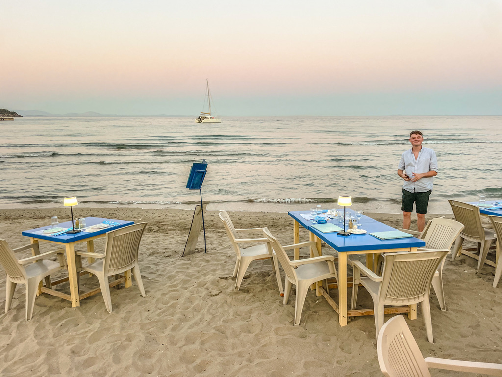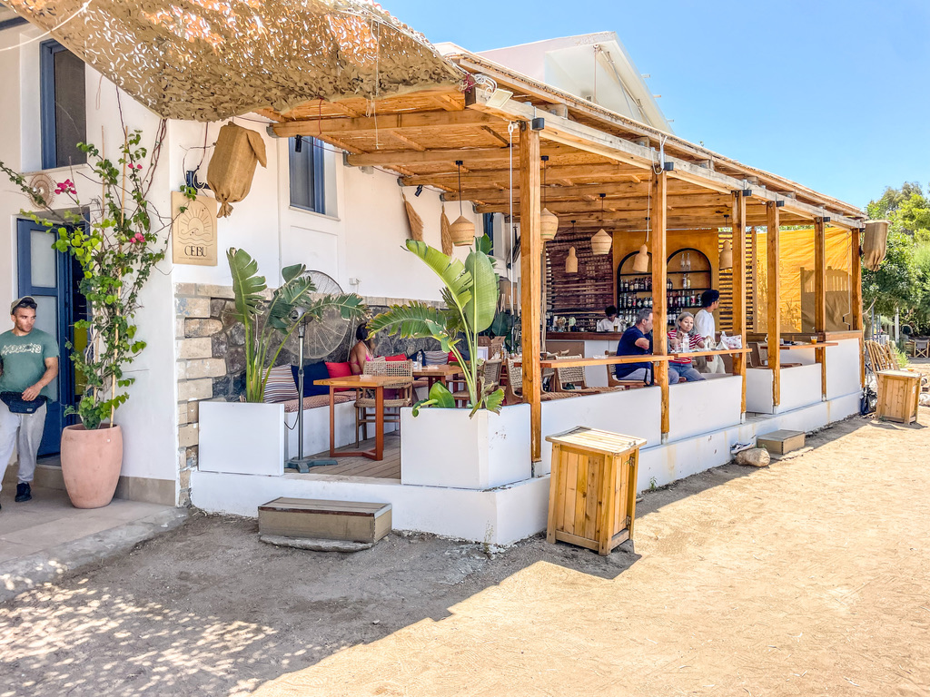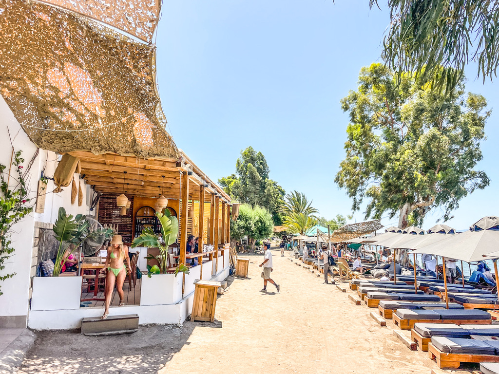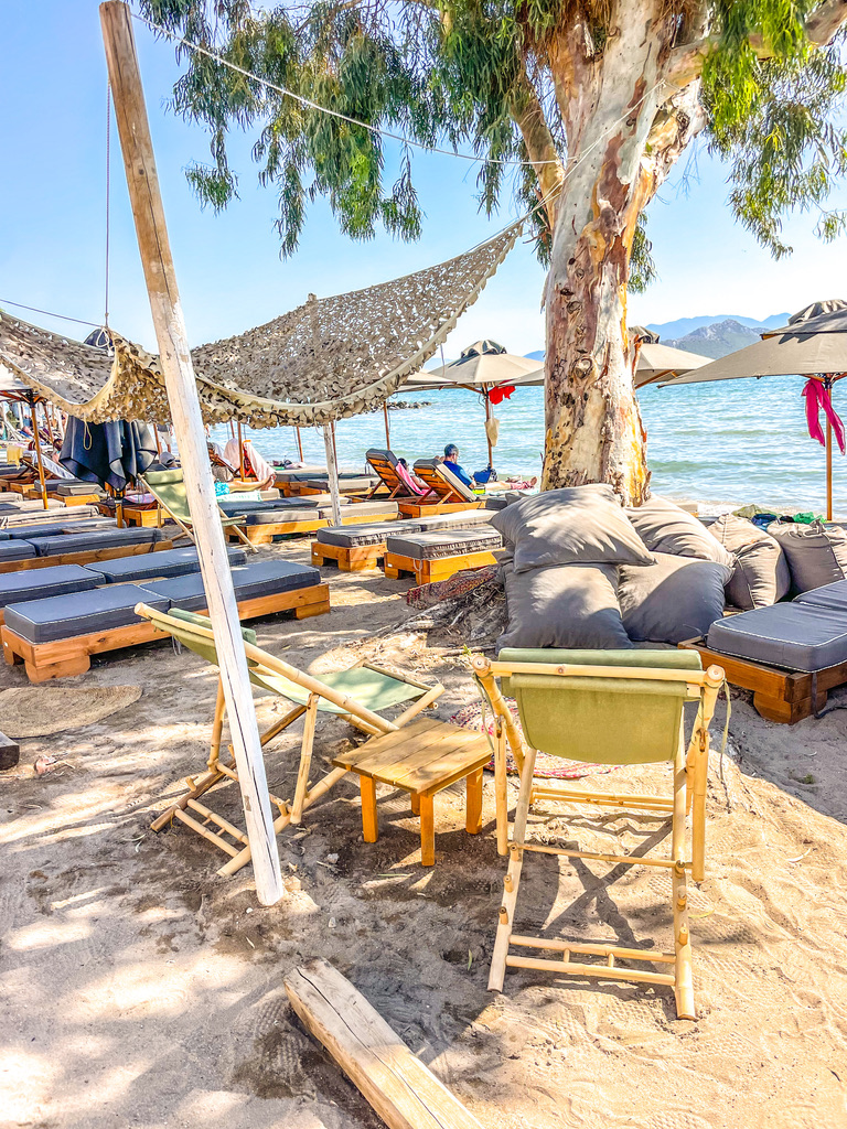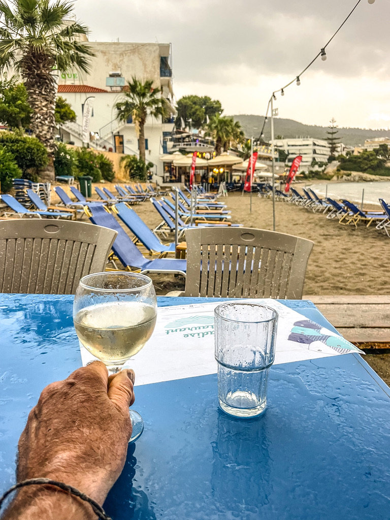 Marathonas beach – 50 cc is voor een Griekse scooter meer dan zat – Aegina is niet groot en snelheid past haar niet – er is weinig verkeer op de weg – de spichtige katten die hier wonen gebruiken het asfalt ook , alleen om te languit te chillen- vanaf Marathonas beach kijk je fijn vanaf je strandbed over de baai naar het herten eilandje Moni- de ober is hier fijn alert (die gozer komt er wel ) een biertje voor meneer is snel getapt – als je niet beter zou weten staat dit cafe qua looks op Ibiza of Bali – global social media style – je mag er wat van vinden , maar tegenhouden doe je het niet -proost.