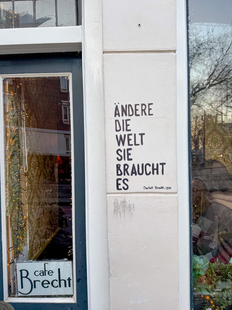 Om toch in de culturele hoek te blijven, fietsten we naar Café Brecht op de Weteringschans. Het café is geïnspireerd op het werk van Bertolt Brecht. Wie ? Brecht was een Duitse schrijver, dichter en toneelregisseur.