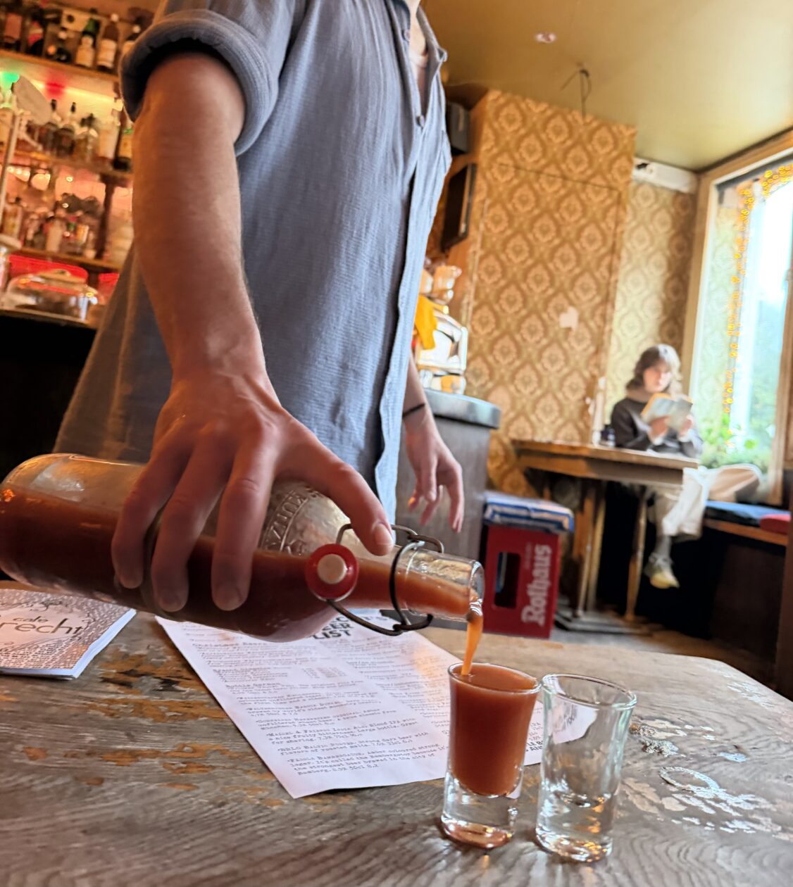 Brecht is een tof ‘woonkamer-café’, ingericht in een fijne vintage Berlijnse stijl in hartje Amsterdam. Toevallig stond ‘Brechtje’ zelf achter de bar. Op de menukaart staan onder andere glühwein, warme cider, chocomel met rum en een flinke dot slagroom, Duitse bieren, wijnen, cocktails, huisgemaakte frisdranken, koffie en hapjes. Je kunt bij een eerste bezoek natuurlijk niet de hele kaart uitproberen, dus hier is een kleine tip: probeer de Mexikaner. Dat is een klein, pittig shotje (tequila, tomatensap, tabascosaus, zout en zwarte peper) om je ogen goed open te kunnen houden op de terugweg .